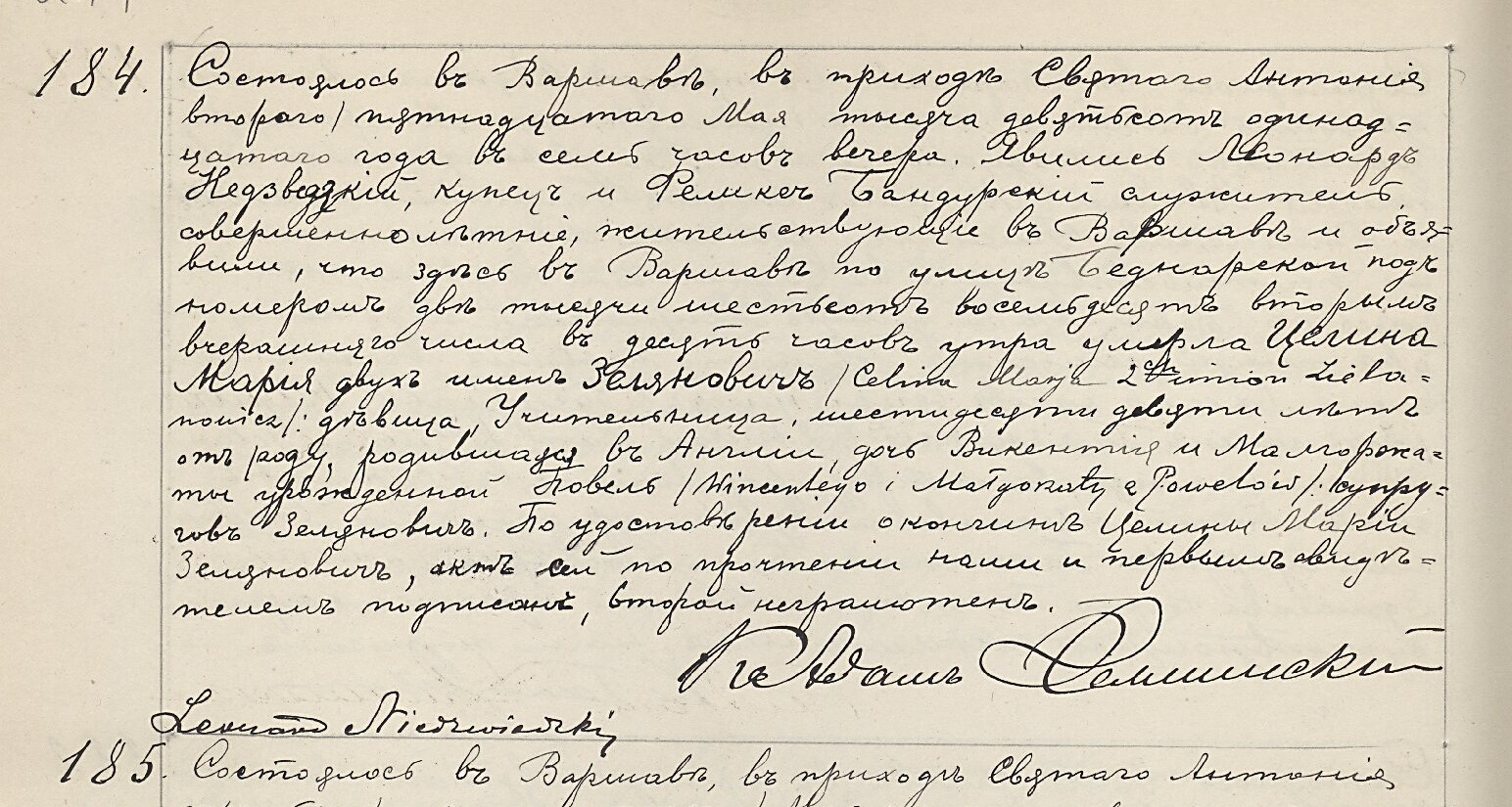 | sw.888987 | sw.888986 (9.330.416) | Akt małżeństwa: Warszawa św. Antoni (obecn. m. Warszawa), 172/1913 [indeks na http://geneteka.genealodzy.pl/] http://metryki.genealodzy.pl/metryki.php?op=kt&ar=1&zs=1218d&sy=1913&kt=2 [podgląd] |