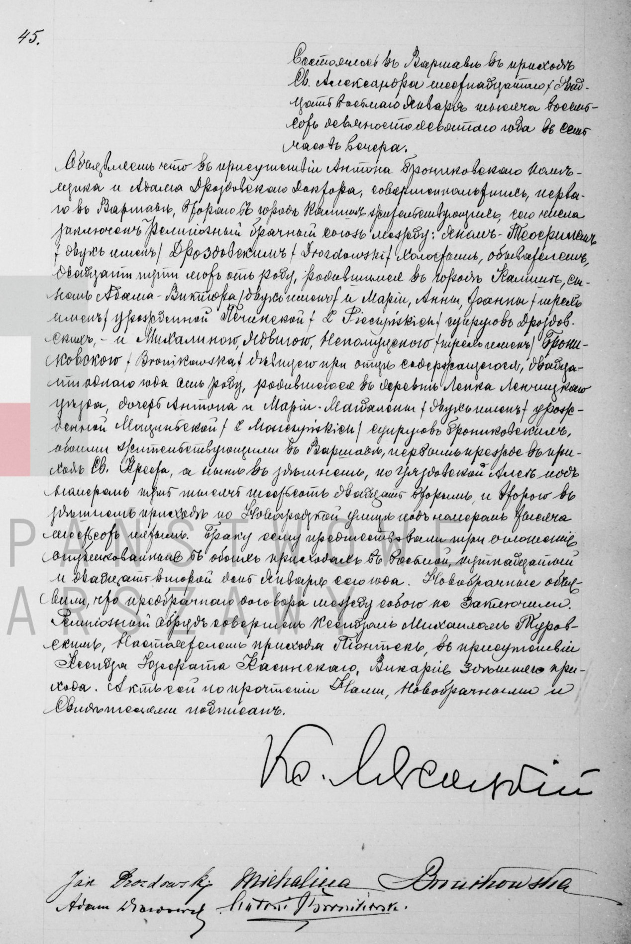 | dw.39627 | sw.209499 | sw.209500 (dw.39619) | sw.209501 (dw.39623) | Akt małżeństwa: Warszawa św. Aleksander (obecn. m. Warszawa), 45/1899 [indeks na http://geneteka.genealodzy.pl/] http://metryki.genealodzy.pl/metryki.php?op=kt&ar=1&zs=0162d&sy=1899b&kt=2 [podgląd] |