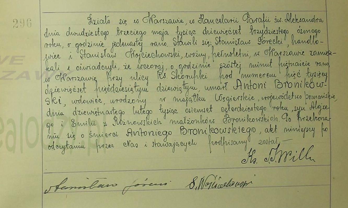 | genetekaz.11321760 | 22 | may | 1938 | | xpar.1442 | Akt zgonu: Warszawa św. Aleksander (obecn. m. Warszawa), 296/1938 http://localhost/mjm/aleksander_1938_292-297.jpg [podglad] | | Akt zgonu obecny w bazie Geneteka |
