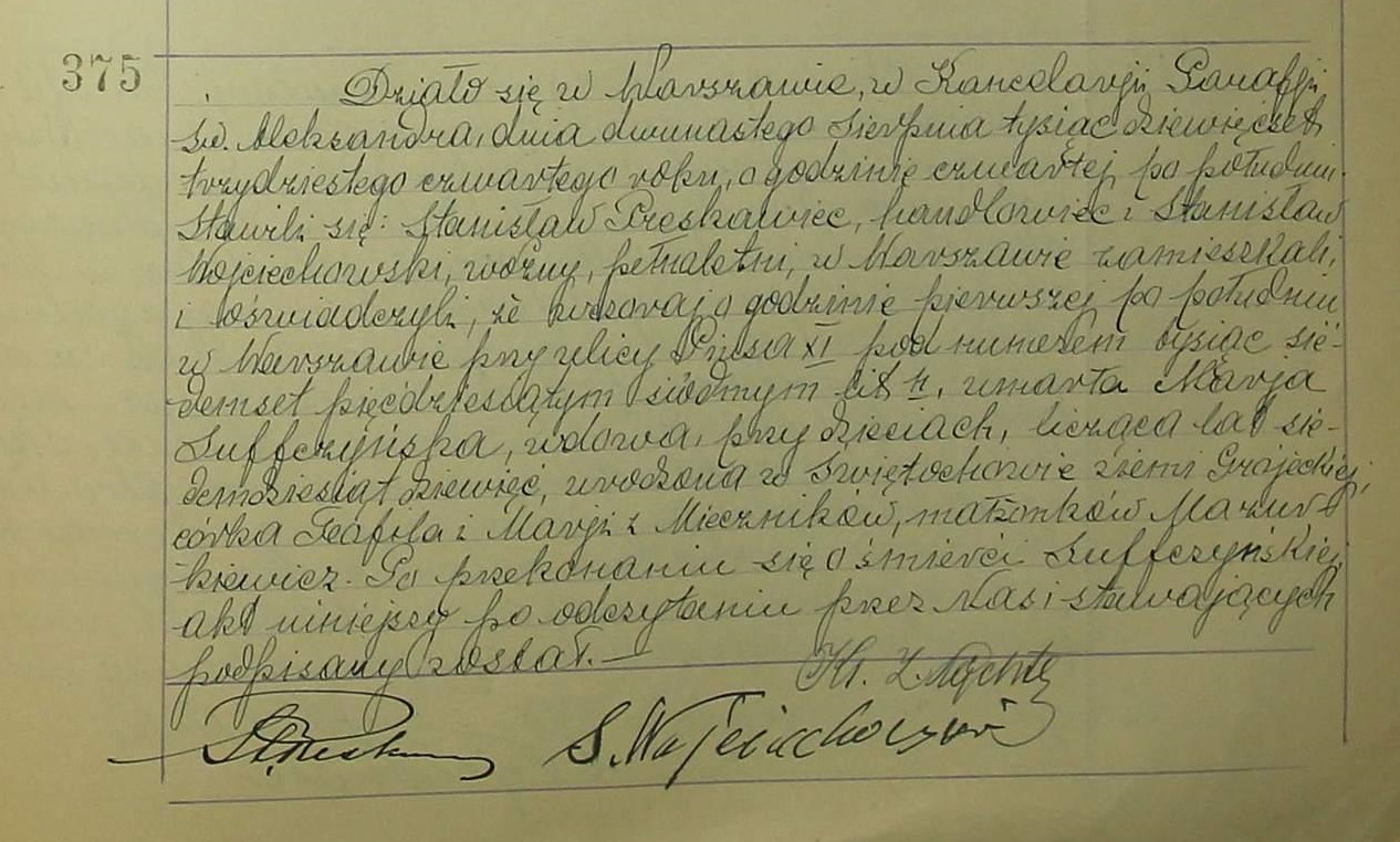| genetekaz.11319494 | 11 | aug | 1934 | | xpar.1442 | Akt zgonu: Warszawa św. Aleksander (obecn. m. Warszawa), 375/1934 http://localhost/mjm/aleksander_1934_370-375.jpg [podglad] | | Akt zgonu obecny w bazie Geneteka |