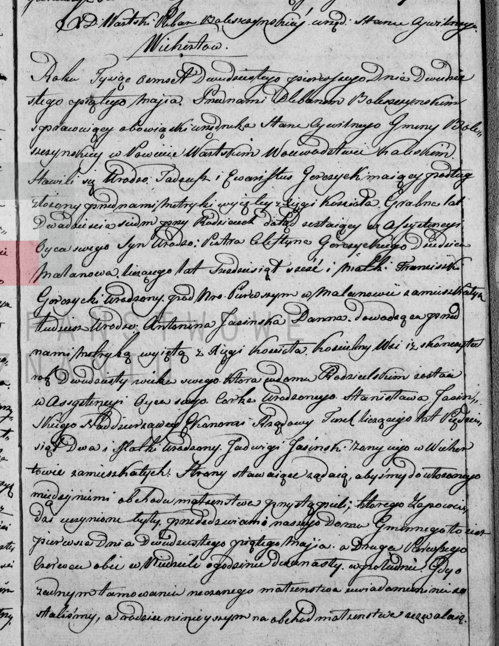 | le.1333.1.3 | sw.440450 | le.1008.1.10 (le.1008.1.10) | le.1008.1.11 (le.1008.1.11) | Akt małżeństwa: Warszawa ASC Cyrkuł III (obecn. m. Warszawa), 35/1822 [indeks na http://geneteka.genealodzy.pl/] http://metryki.genealodzy.pl/metryka.php?ar=1&zs=0185d&sy=114&kt=3&skan=035.jpg [podgląd] |