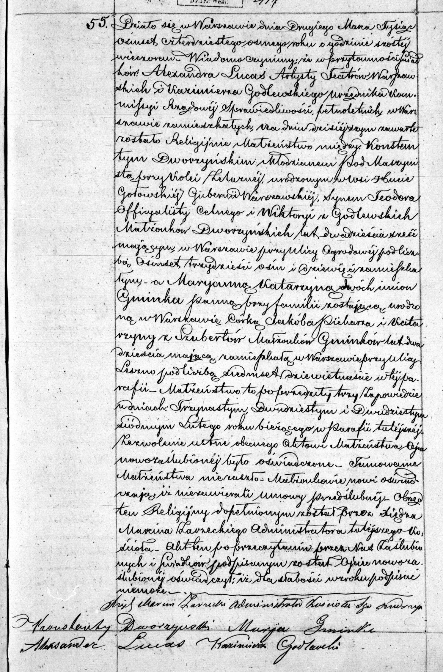 | sw.164222 | m | Teodor | | | | | Dworzyński | | | | | Akt małżeństwa: Warszawa św. Andrzej (obecn. m. Warszawa), 55/1848 [indeks na http://geneteka.genealodzy.pl/] https://metryki.genealodzy.pl/ar1-zs0159d-sy1848-kt2 [podgląd] |