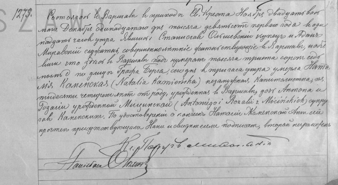 | genetekaz.11248245 | 11 | dec | 1901 | | xpar.1450 | Akt zgonu: Warszawa św. Krzyż (obecn. m. Warszawa), 1275/1901 http://metryki.genealodzy.pl/metryki.php?op=kt&ar=1&zs=0158d&sy=1901b&kt=3 [podglad] | | Akt zgonu obecny w bazie Geneteka |