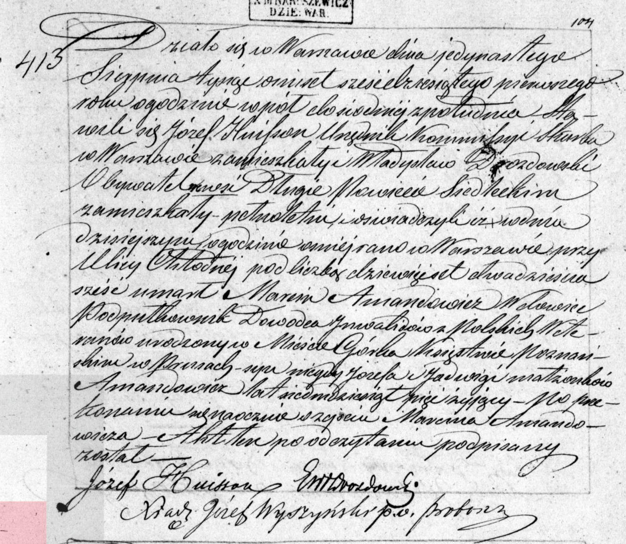 | sw.179656 | m | Marcin | | | | | Amandowicz | | | | | Akt małżeństwa: Warszawa św. Andrzej (obecn. m. Warszawa), 31/1833 [indeks na http://geneteka.genealodzy.pl/] http://metryki.genealodzy.pl/metryki.php?op=kt&ar=1&zs=0159d&sy=1833&kt=2 [podgląd] |