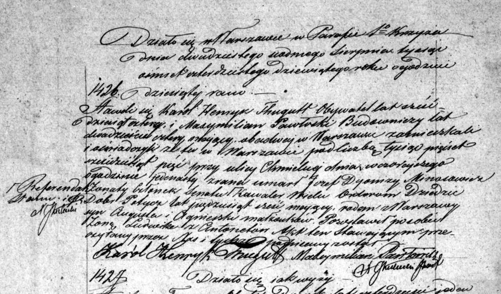 | genetekaz.4949710 | 26 | aug | 1849 | | xpar.1450 | Akt zgonu: Warszawa, par. św. Krzyża (obecn. m. Warszawa), 1426/1849 http://szukajwarchiwach.pl/72/158/0/-/23/skan/full/wLKJCPPpHDYP-l2omJbpKA [podglad] | | Akt zgonu obecny w bazie Geneteka |