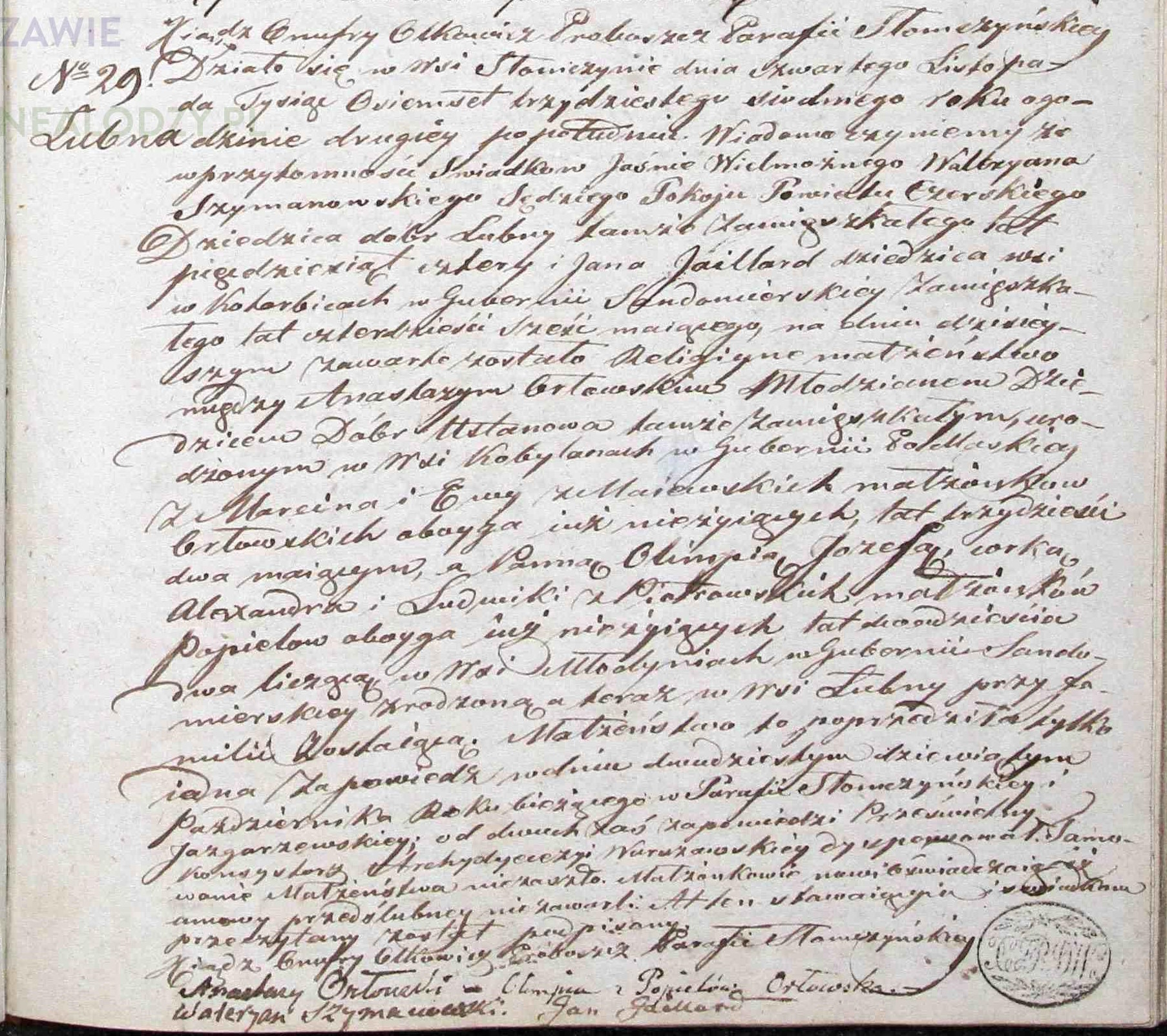| genetekau.7562238 | | | | | Młodynie Sandom. | Akt urodzenia: Warszawa św. Jan (obecn. m. Warszawa), 49/1828 http://metryki.genealodzy.pl/metryka.php?ar=8&zs=9233d&sy=131&kt=3&skan=047-050.jpg | | Akt chrztu obecny w bazie Geneteka |