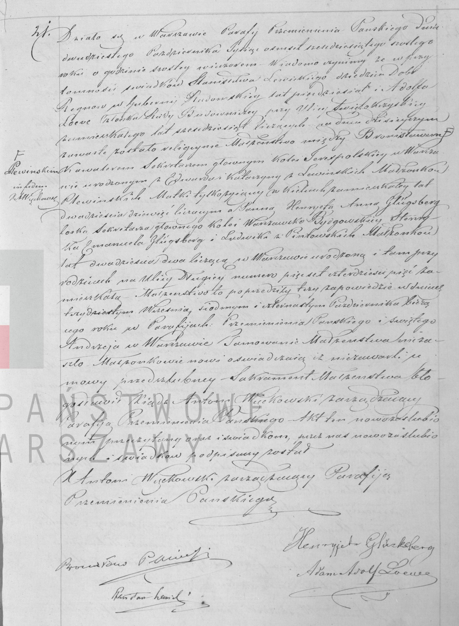 | sw.193399 | m | Edward | | | | | Plewiński | | | | | Akt małżeństwa: Warszawa Przemienienie Pańskie (obecn. m. Warszawa), 21/1866 [indeks na http://geneteka.genealodzy.pl/] http://metryki.genealodzy.pl/metryki.php?op=kt&ar=1&zs=1216d&sy=1866&kt=2 [podgląd] |