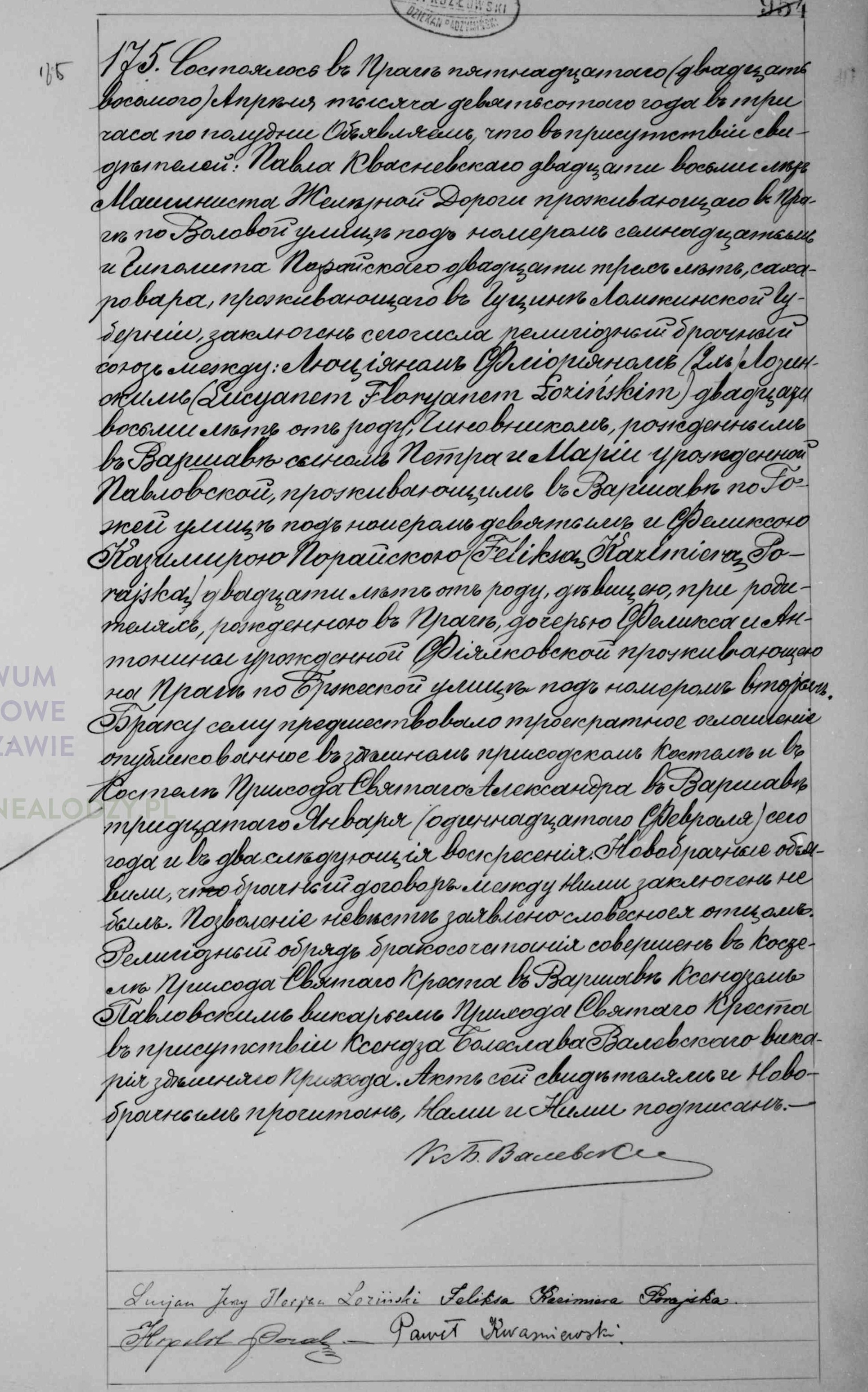 | sw.1106994 | sw.1106994 | sw.1106995 (le.2886.1.2) | sw.1106996 (sw.599627) | Akt małżeństwa: Warszawa-Praga MB Loretańska (obecn. m. Warszawa), 175/1900 [indeks na http://geneteka.genealodzy.pl/] http://metryki.genealodzy.pl/metryki.php?op=kt&ar=1&zs=0163d&sy=1900c&kt=3 [podgląd] |