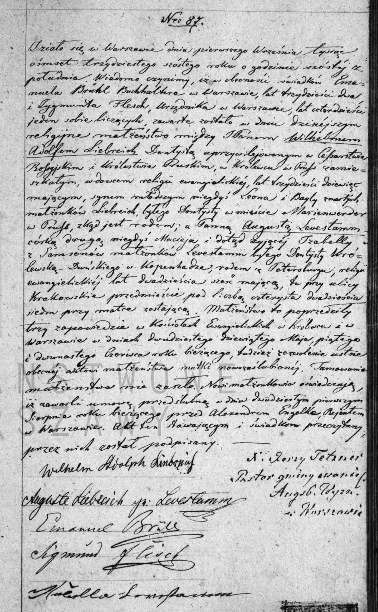 | sw.412150 | sw.412150 | le.3279.1.6 (le.3279.1.6) | le.3279.1.7 (le.3279.1.7) | Akt małżeństwa: Warszawa parafia Ewangelicko-Augsburska (obecn. m. Warszawa), 87/1836 [indeks na http://geneteka.genealodzy.pl/] http://metryki.genealodzy.pl/metryki.php?op=kt&ar=1&zs=0181d&sy=1836&kt=2 [podgląd] |