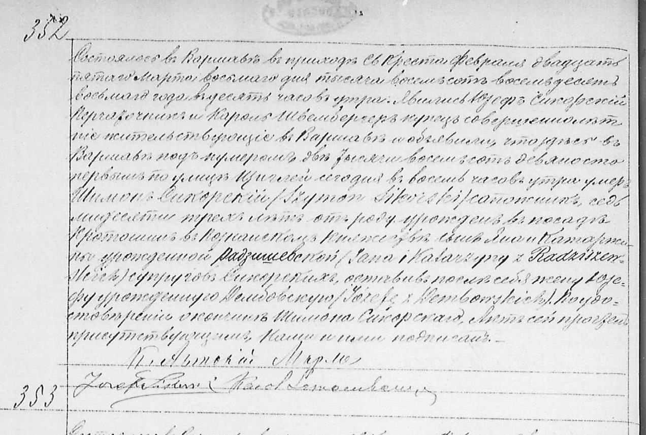 | genetekaz.11404264 | 8 | mar | 1888 | | xpar.1450 | Akt zgonu: Warszawa św. Krzyż (obecn. m. Warszawa), 352/1888 http://localhost/mjm/krzyz_1888_161_113_0118.jpg [podglad] | | Akt zgonu obecny w bazie Geneteka |