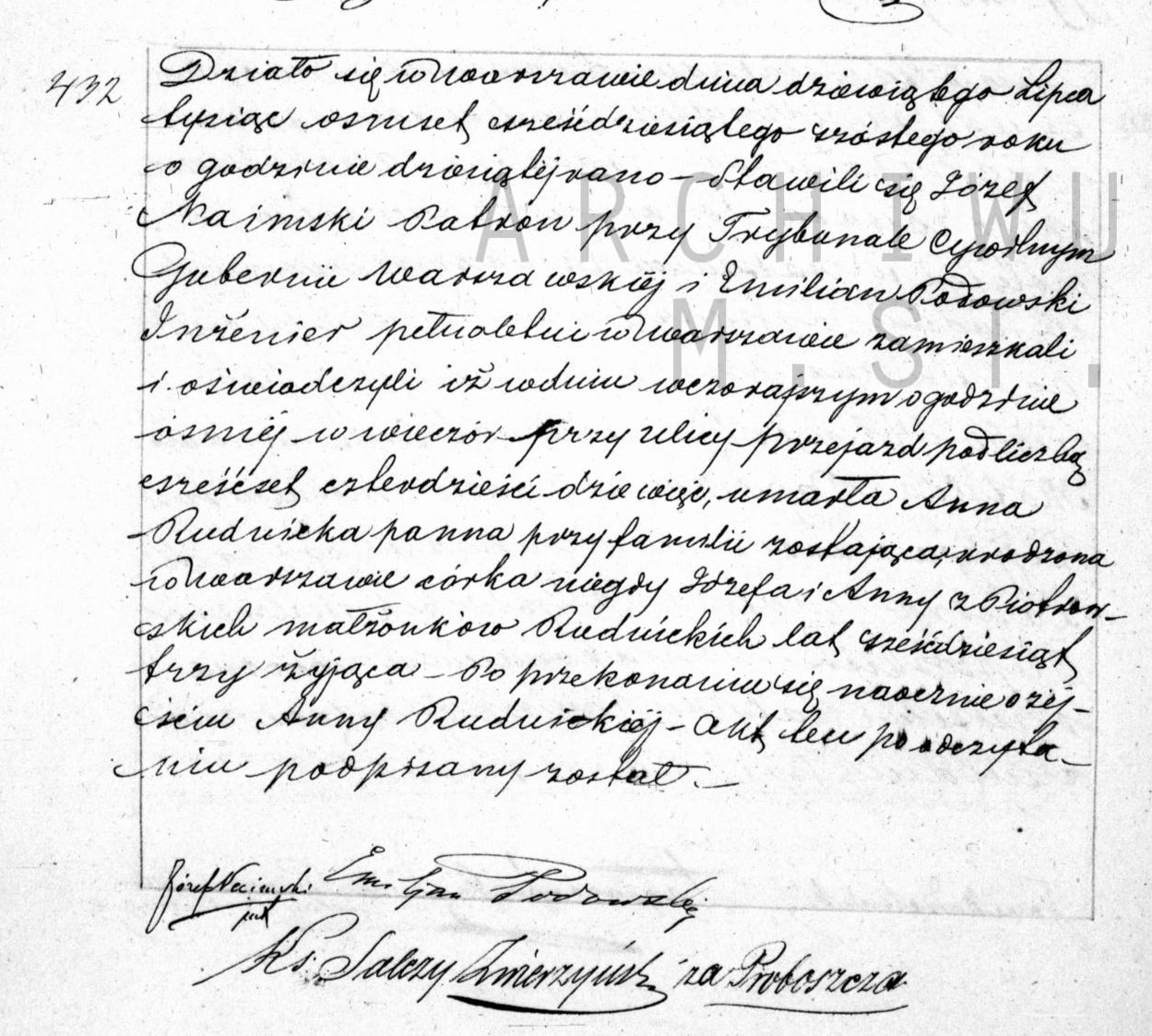 | le.346.1.9 | le.346.1.10 (le.346.1.10) | 15 | oct | 1797 | | xpar.1443 | Akt małżeństwa: Warszawa św. Andrzej (obecn. m. Warszawa), rok 1797, nr aktu 1043 [indeks na http://geneteka.genealodzy.pl/] | | | Akt ślubu obecny w bazie Geneteka |