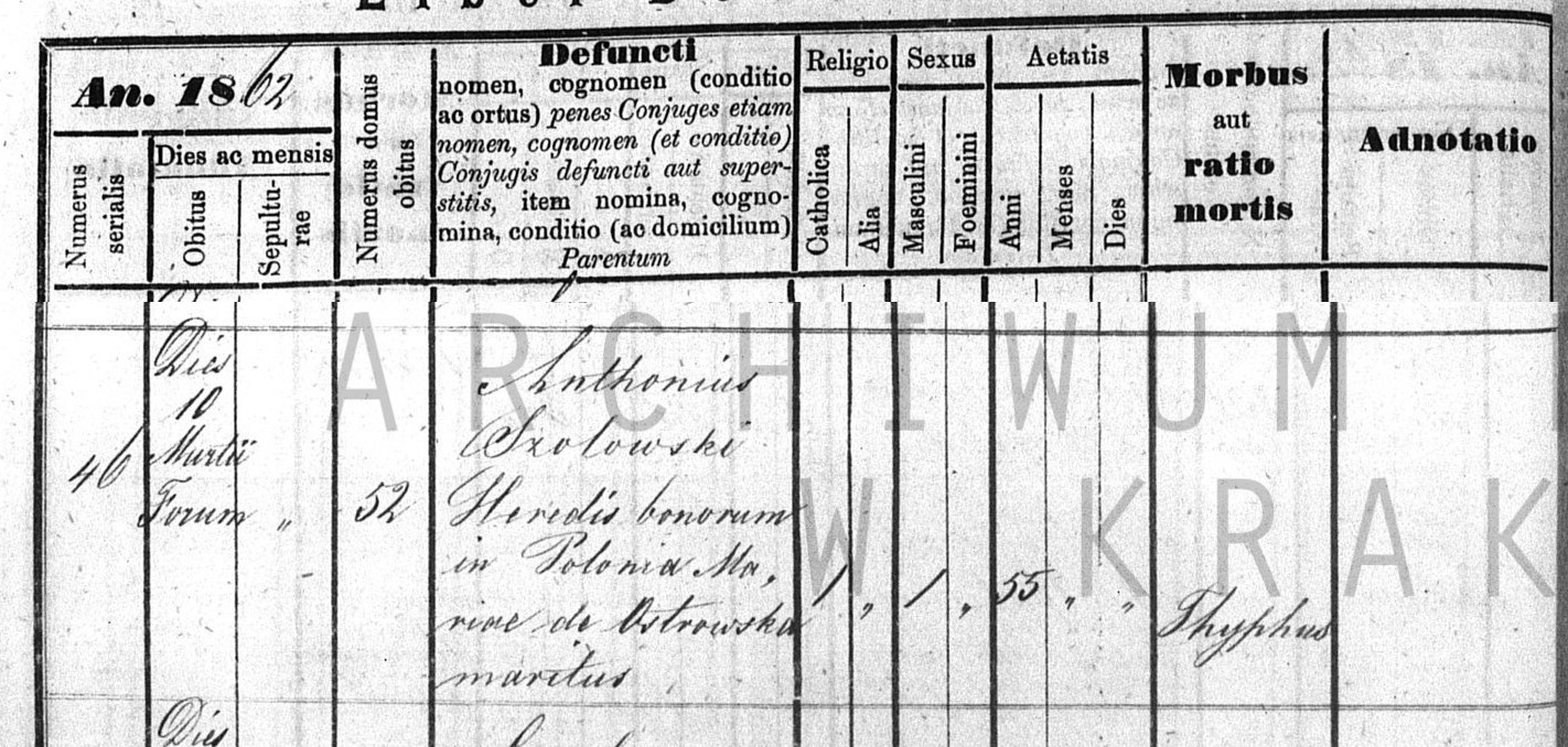 | genetekaiz.1862_335 | 10 | mar | 1862 | | xpar.481 | Indeks Cmentarza Rakowickiego: 335/1862 | | Akt zgonu spoza głównych baz |
