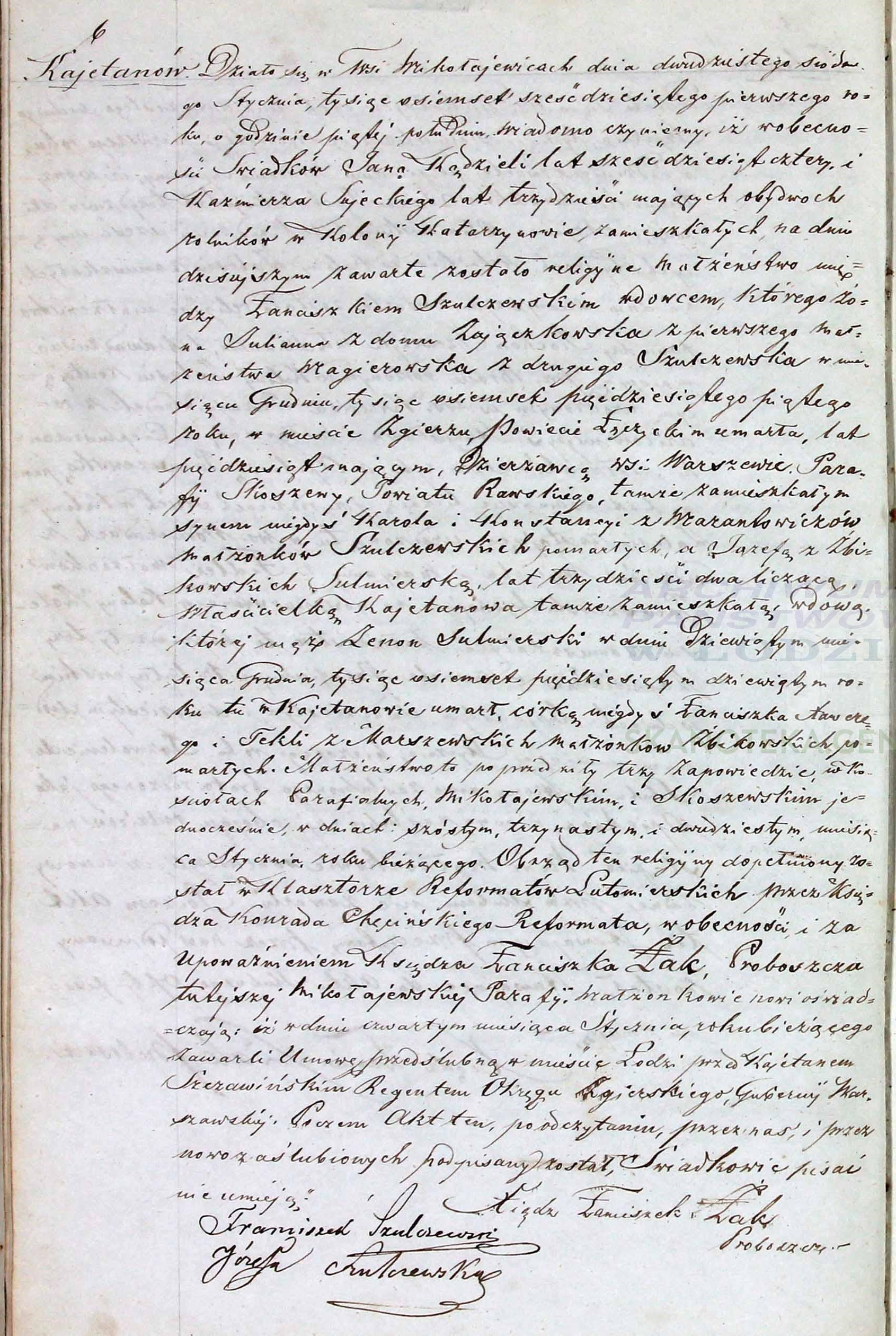 | le.3692.1.2 | sw.956392 (sw.956392) | 27 | jan | 1861 | xpar.355 | Akt małżeństwa: Mikołajewice (obecn. woj. łódz.), rok 1861, nr aktu 6 [indeks na http://geneteka.genealodzy.pl/] http://metryki.genealodzy.pl/metryki.php?op=kt&ar=3&zs=1587d&sy=1861&kt=2 [podgląd] | Akt ślubu obecny w bazie Geneteka | |||