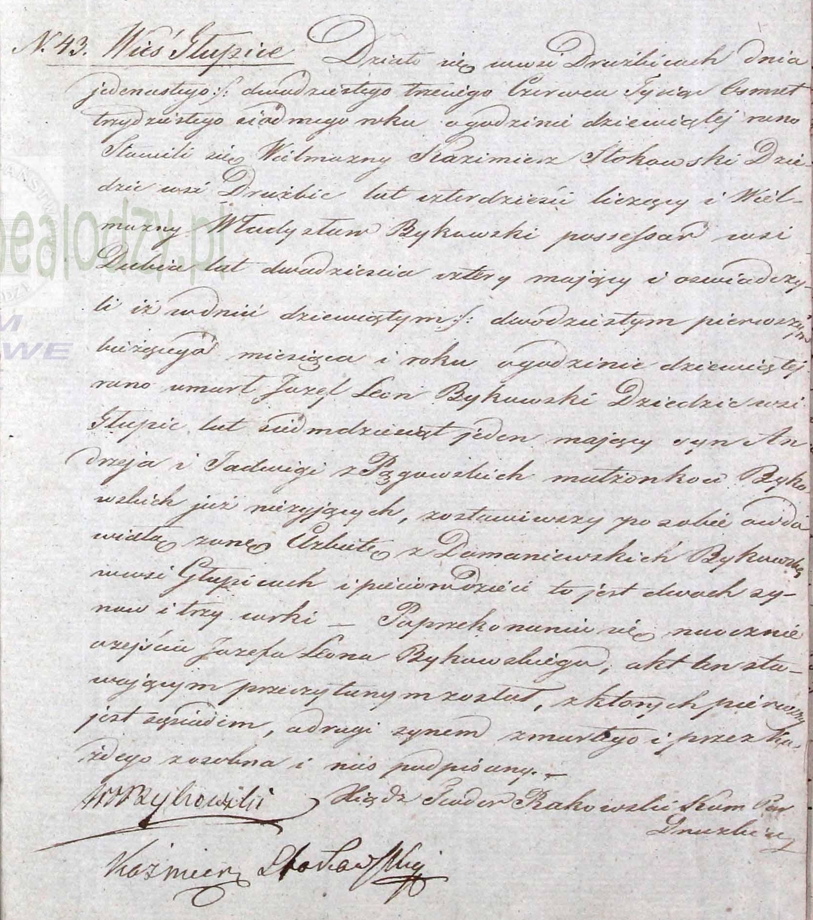 | sw.910399 | | | | AFT 21 JUN 1837 | | | | Akt zgonu: Drużbice (obecn. woj. łódz.), 43/1837 [indeks na http://geneteka.genealodzy.pl/] http://metryki.genealodzy.pl/metryka.php?ar=3&zs=1461d&sy=1837&kt=3&plik=039-043.jpg [podgląd] |