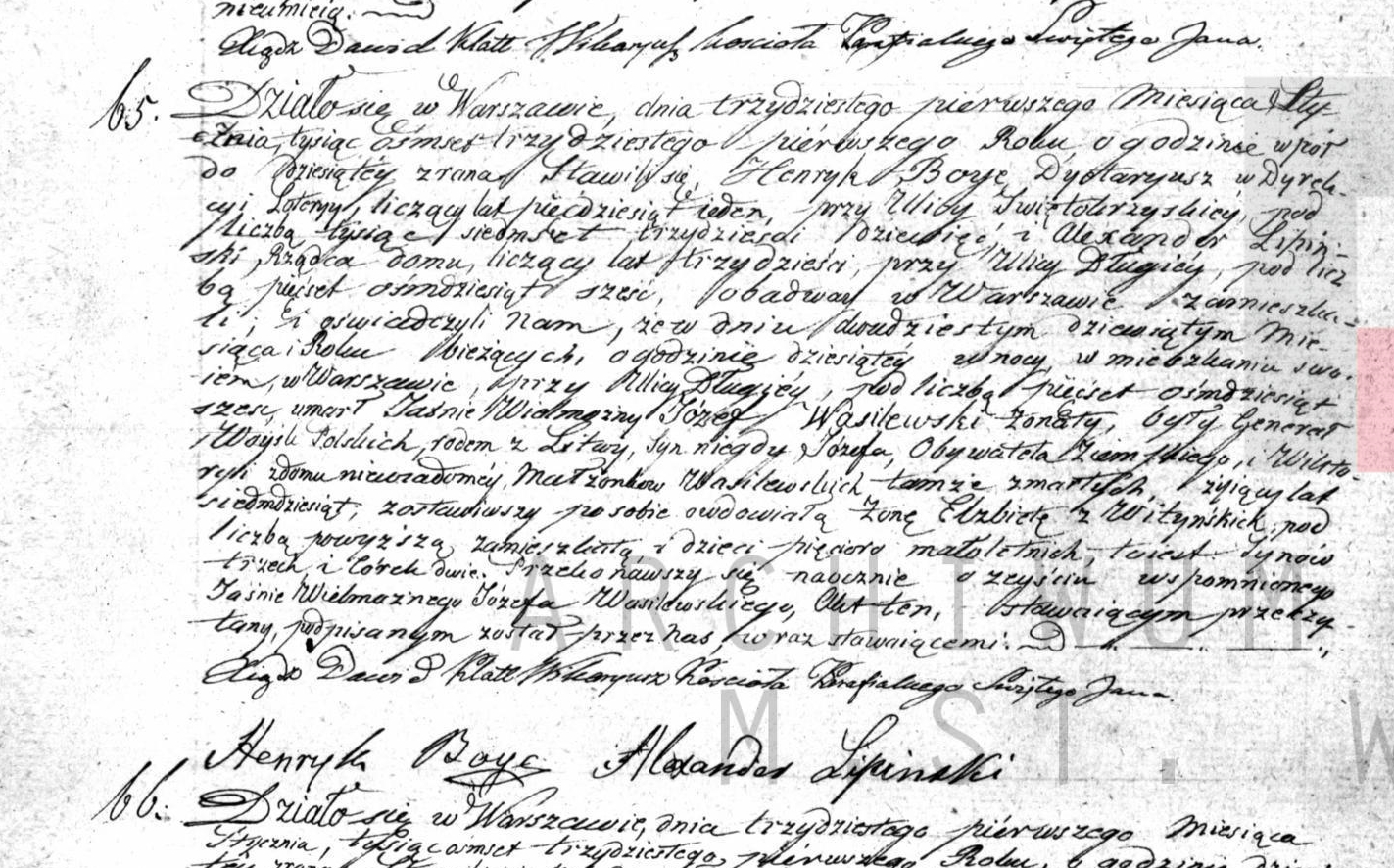 | sw.468614 | sw.468615 (sw.468615) | sw.468616 (sw.468616) | Akt zgonu: Warszawa św. Jan (obecn. m. Warszawa), 65/1831 [indeks na http://geneteka.genealodzy.pl/] http://szukajwarchiwach.pl/72/161/0/-/6/skan/full/I4l8xr_NZrgfJk0DhOcPpw [podgląd] |