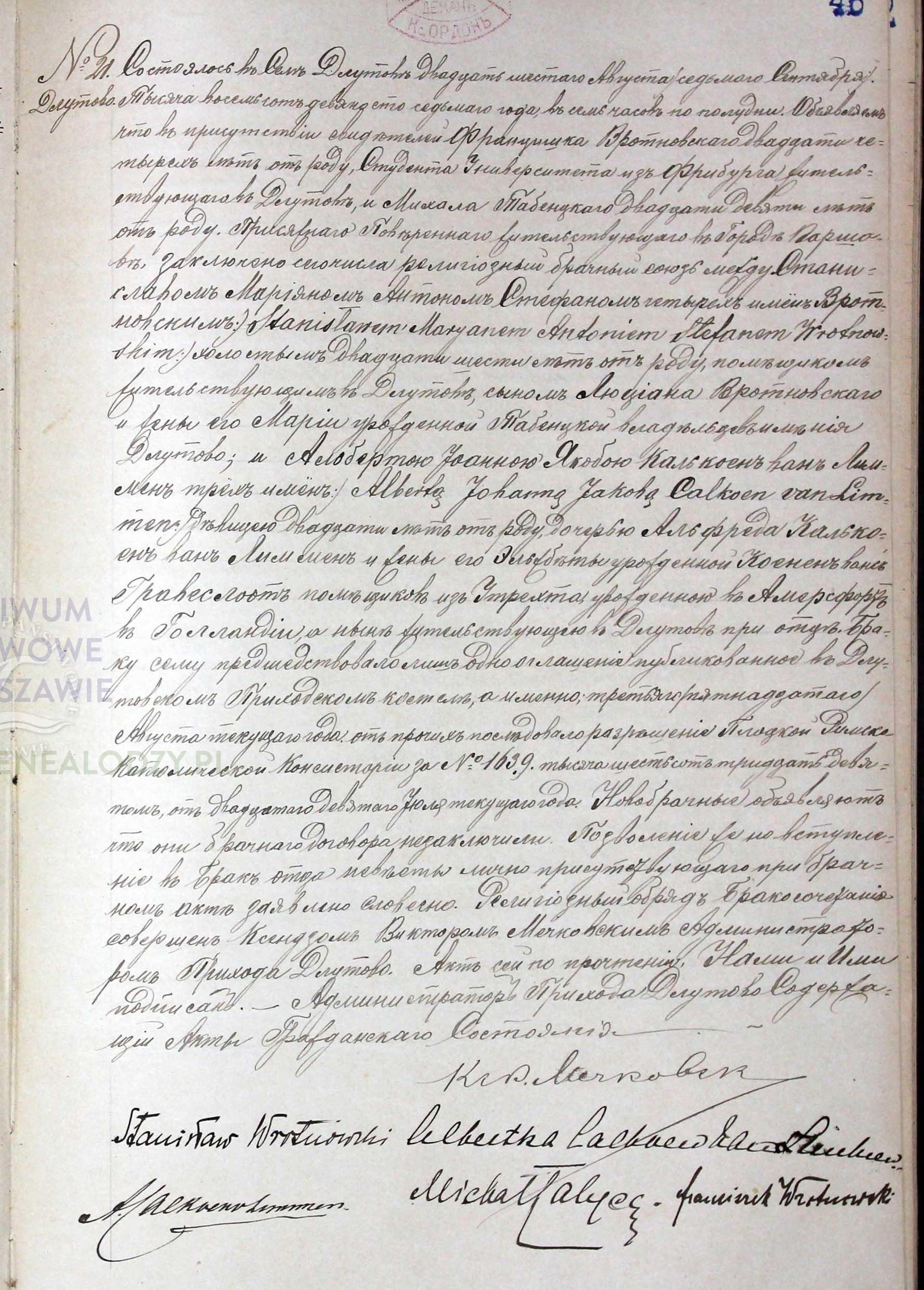| sw.349187 | sw.349187 | le.4193.1.4 (le.4193.1.4) | sw.16117 (sw.16117) | Akt małżeństwa: Stare Dłutowo (obecn. woj. warm.-maz.), 21/1897 [indeks na http://geneteka.genealodzy.pl/] http://metryki.genealodzy.pl/metryki.php?op=kt&ar=13&zs=0645d&sy=1897&kt=2 [podgląd] |