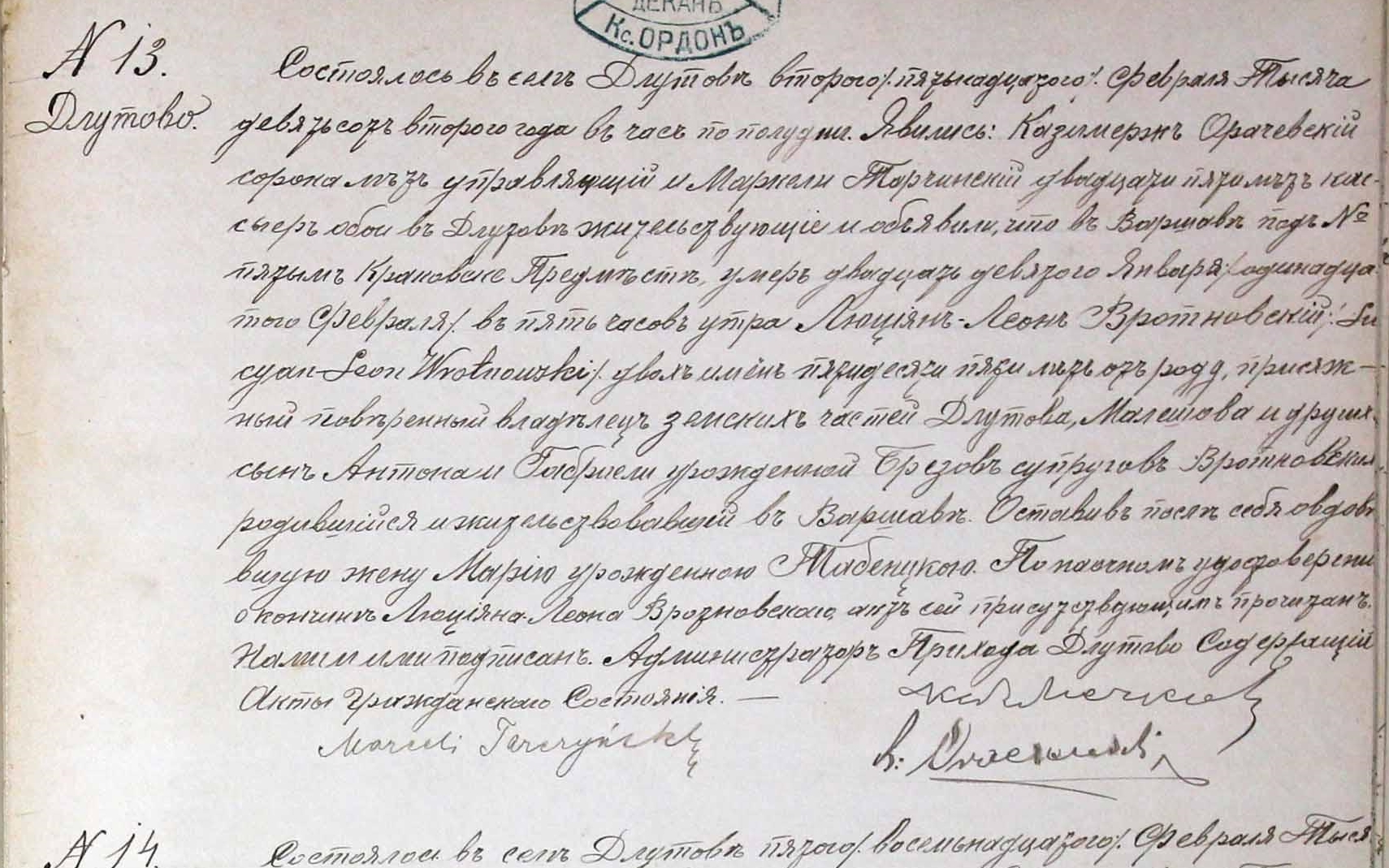 | sw.349179 | 11 | feb | 1902 | | xpl.warszawa | | | Akt zgonu: Dłutowo, 13/1902 |