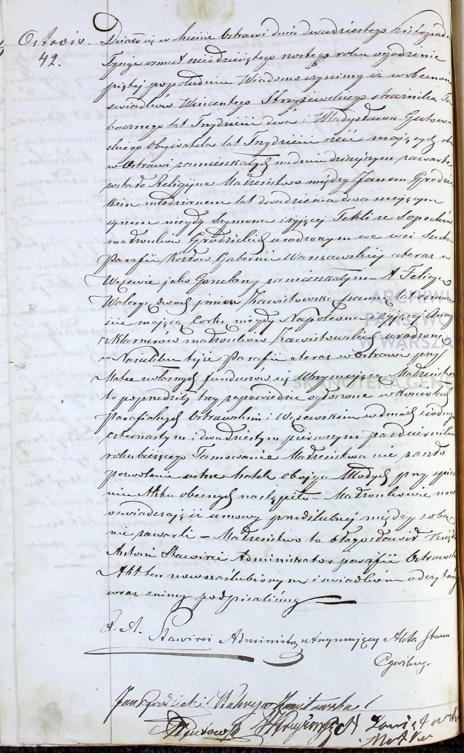 | sw.585206 | sw.585206 | sw.273296 (le.4346.3.3) | sw.273297 (sw.273297) | Akt małżeństwa: Ostrów Mazowiecka (obecn. woj. mazow.), 42/1866 [indeks na http://geneteka.genealodzy.pl/] http://metryki.genealodzy.pl/metryka.php?ar=6&zs=0092d&sy=1866&kt=2&skan=42-43.jpg [podgląd] |