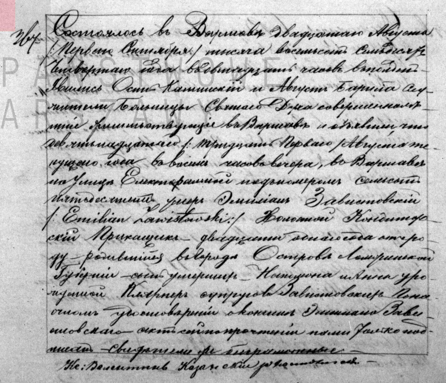 | sw.1042808 | sw.1042808 | le.4346.3.3 (le.4346.3.3) | sw.273297 (sw.273297) | Akt zgonu: Warszawa św. Andrzej (obecn. m. Warszawa), 118/1916 [indeks na http://geneteka.genealodzy.pl/] http://metryki.genealodzy.pl/metryki.php?op=kt&ar=8&zs=9159d&sy=368&kt=2 [podgląd] |