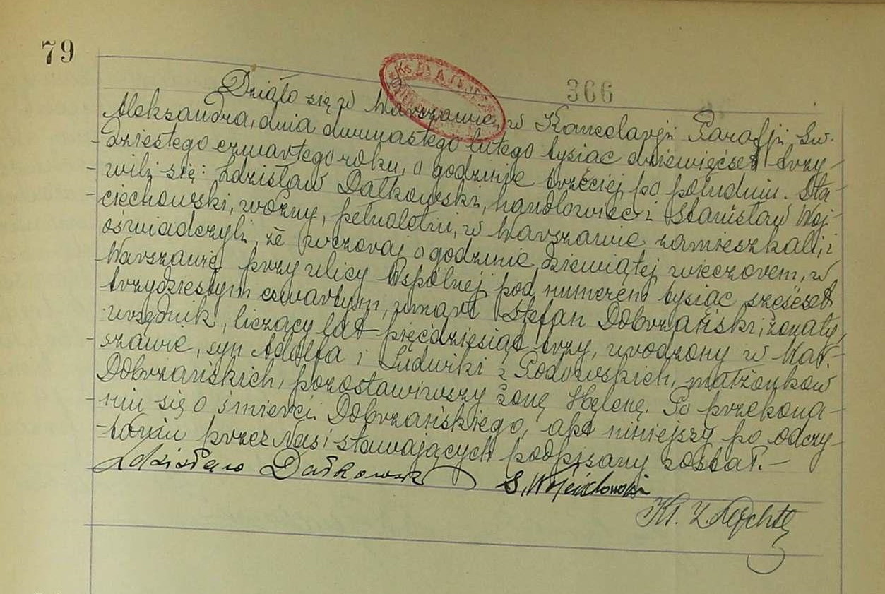 | le.688.3.14 | sw.222001 (sw.222001) | 1898 | xpar.1450 | Akt małżeństwa: Warszawa św. Krzyż (obecn. m. Warszawa), rok 1898, nr aktu 217 [indeks na http://geneteka.genealodzy.pl/] http://metryki.genealodzy.pl/metryki.php?op=kt&ar=1&zs=0158d&sy=1898b&kt=2 [podgląd] | Akt ślubu obecny w bazie Geneteka | |||||