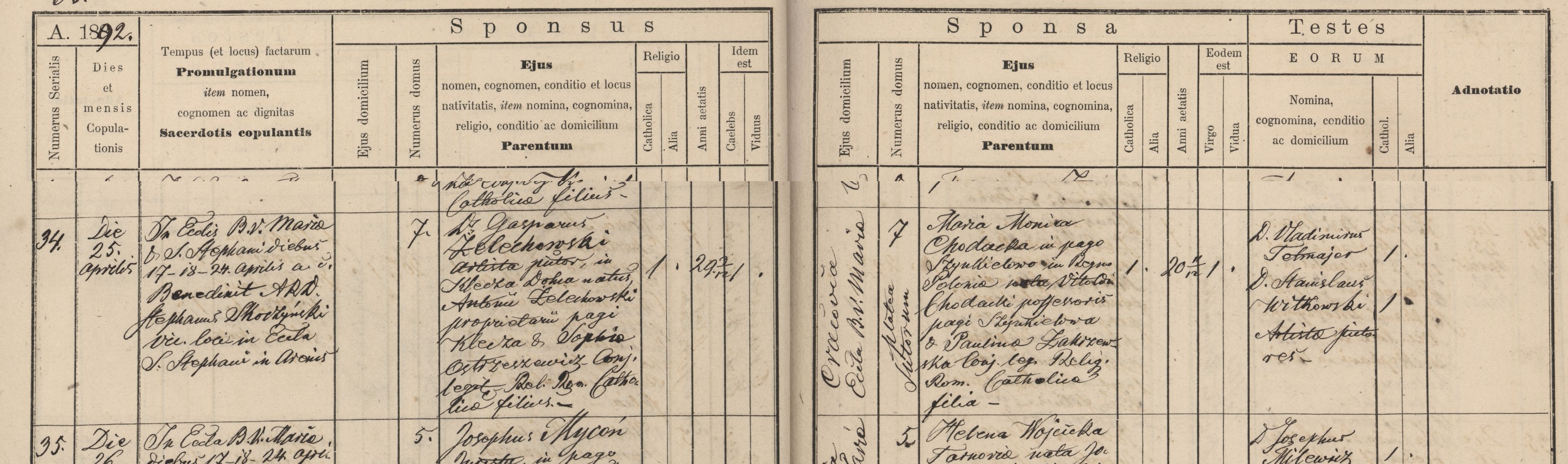 | sw.18878 | sw.1276502 | lu.20925 (lu.20925) | lu.20924 (lu.20924) | Akt małżeństwa: Kraków WNMP (Mariacki) (obecn. woj. małop.), 34/1892 [indeks na http://geneteka.genealodzy.pl/] https://szukajwarchiwach.gov.pl/en/jednostka/-/jednostka/14604824 [podgląd] |