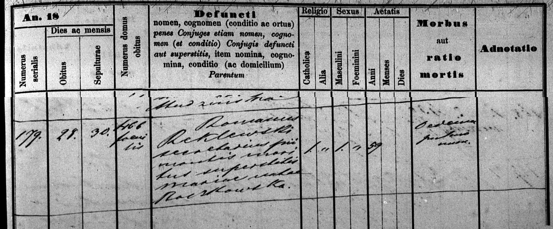 | insertonline.33986 | | | | | xpl.krakow | akt zgonu par. Mariackiej nr 179/1876 ; Roman zmarł w wieku 59 lat ; http://www.szukajwarchiwach.pl/29/328/0/3/181/skan/medium/-FtLb6IOreAO1v3gZ0qWuQ -- Informacja p. Witolda Gogóła (z 14.8.2017) | | Uzupełnienia użytkowników wprowadzane online |