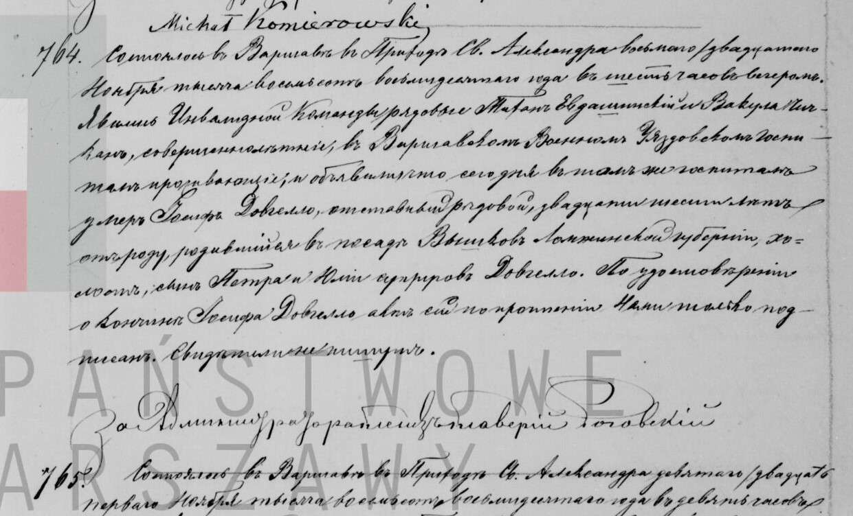 | genetekaz.11330792 | 20 | nov | 1880 | | xpar.1442 | Akt zgonu: Warszawa św. Aleksander (obecn. m. Warszawa), 764/1880 http://localhost/mjm/aleksander_1880_158_109_0492.jpg [podglad] | | Akt zgonu obecny w bazie Geneteka |