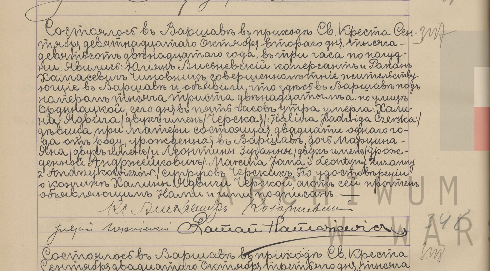 | genetekaz.11253624 | 2 | oct | 1912 | | xpar.1450 | Akt zgonu: Warszawa św. Krzyż (obecn. m. Warszawa), 347/1912 http://metryki.genealodzy.pl/metryki.php?op=kt&ar=1&zs=0158d&sy=1912&kt=3 [podglad] | | Akt zgonu obecny w bazie Geneteka |