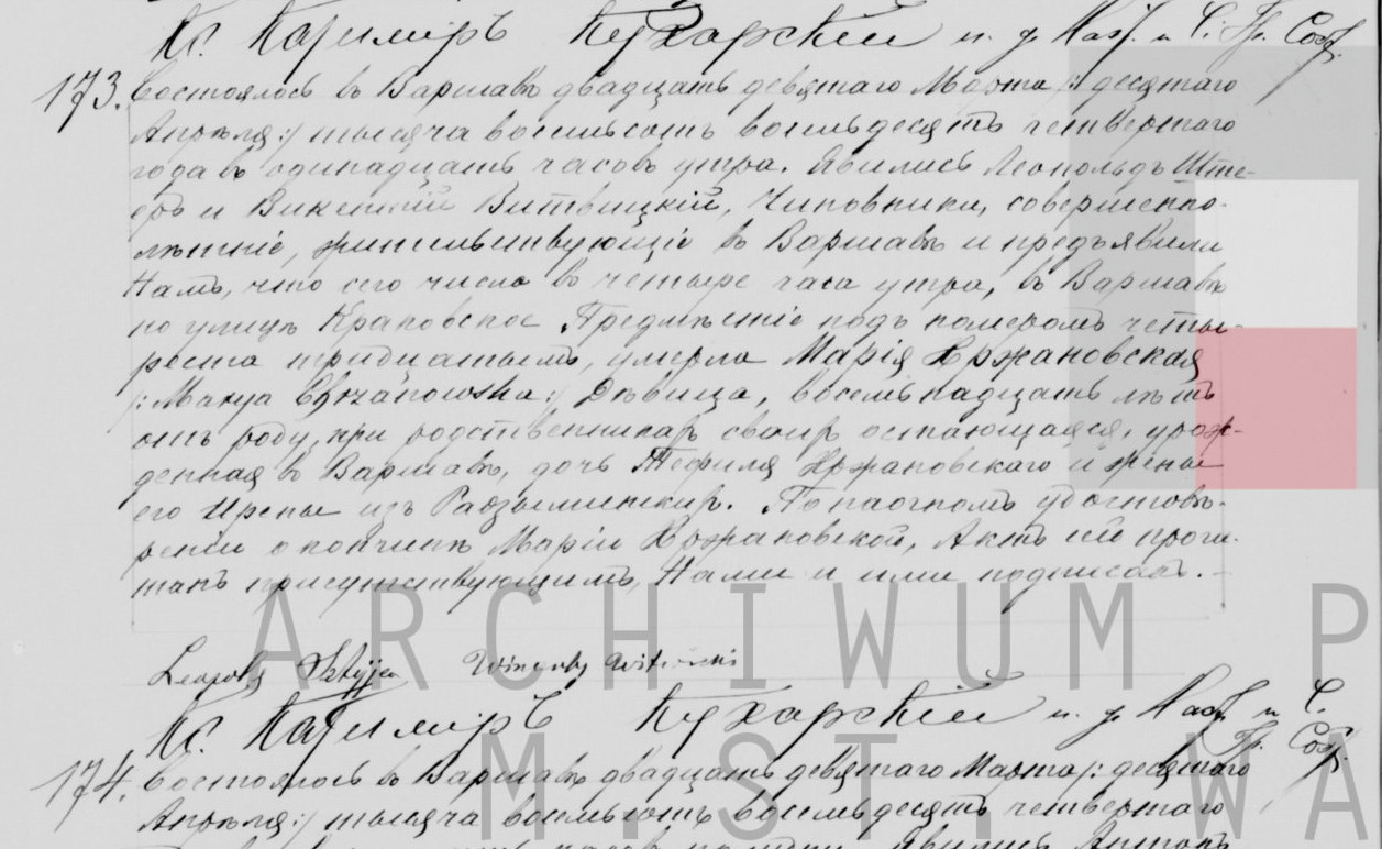 | genetekaz.3345658 | 10 | apr | 1884 | | xpar.1448 | Akt zgonu: Warszawa św. Jan (obecn. m. Warszawa), 173/1884 http://metryki.genealodzy.pl/metryki.php?op=kt&ar=8&zs=9233d&sy=532&kt=2 [podglad] | | Akt zgonu obecny w bazie Geneteka |