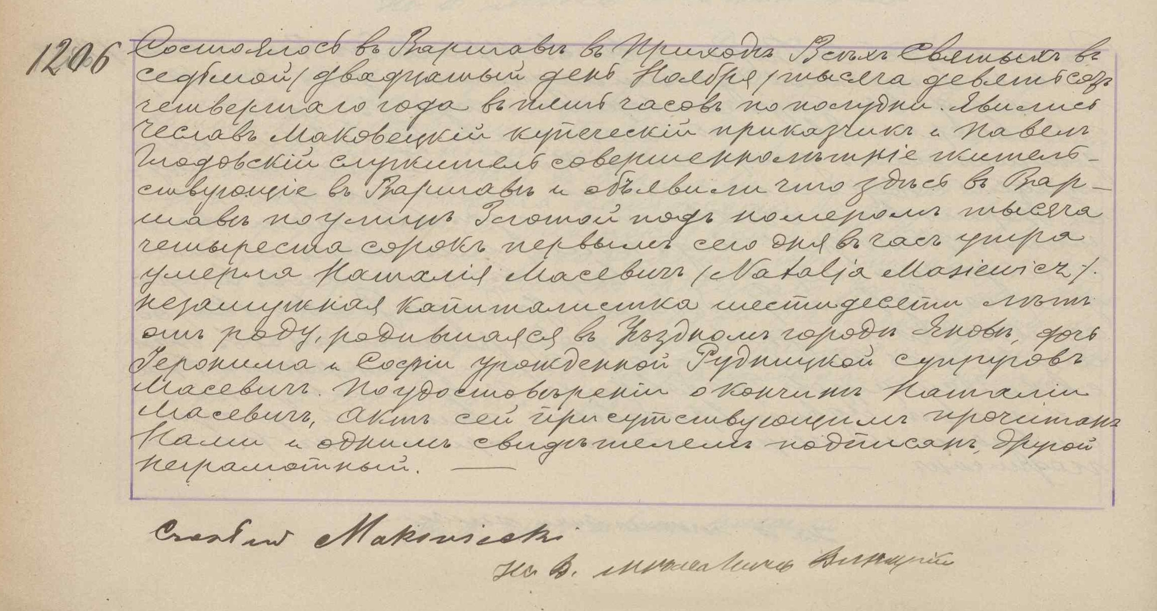 | genetekaz.11464836 | 20 | nov | 1904 | | xpar.1454 | Akt zgonu: Warszawa Wszystkich Świętych (obecn. m. Warszawa), 1206/1904 http://localhost/mjm/wwswietych_1904_1204-1209.jpg [podglad] | | Akt zgonu obecny w bazie Geneteka |