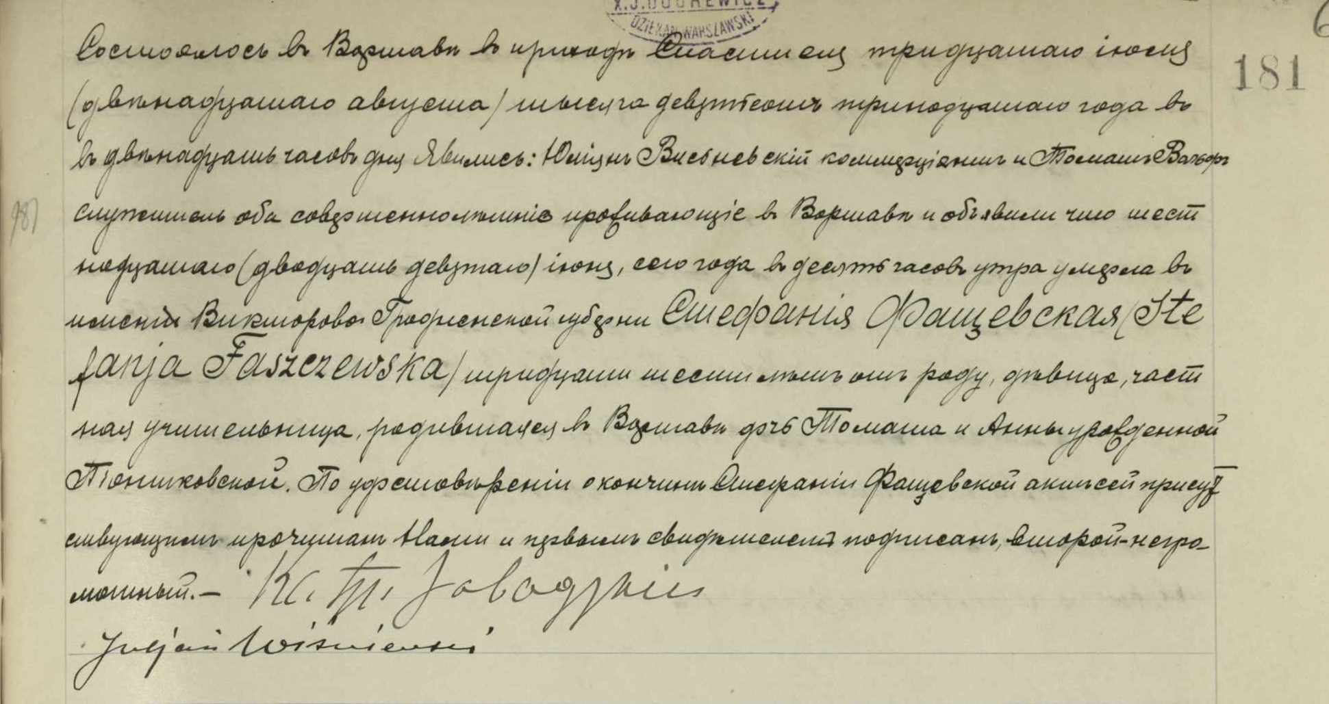 | genetekaz.10175507 | 29 | jun | 1913 | | xpar.3828 | Akt zgonu: Warszawa Najświętszego Zbawiciela (obecn. m. Warszawa), 181/1913 http://metryki.genealodzy.pl/metryki.php?op=kt&ar=1&zs=3684d&sy=1913&kt=3 [podglad] | | Akt zgonu obecny w bazie Geneteka |