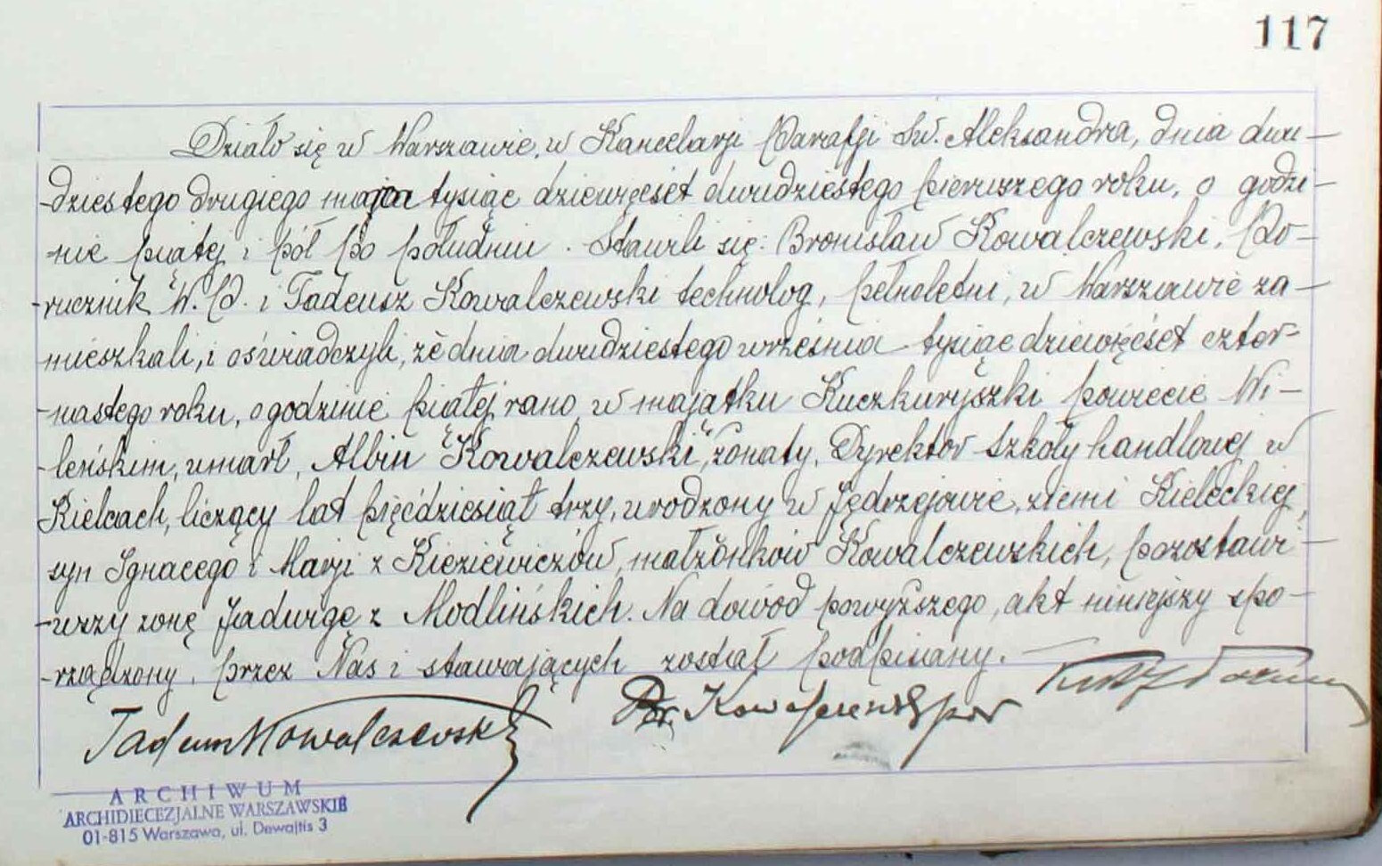 | genetekaz.11456717 | | | | | xpar.1442 | Akt zgonu: Warszawa św. Aleksander (obecn. m. Warszawa), 117/1921 http://localhost/mjm/aleksander_1921_112-117.jpg [podglad] | | Akt zgonu obecny w bazie Geneteka |