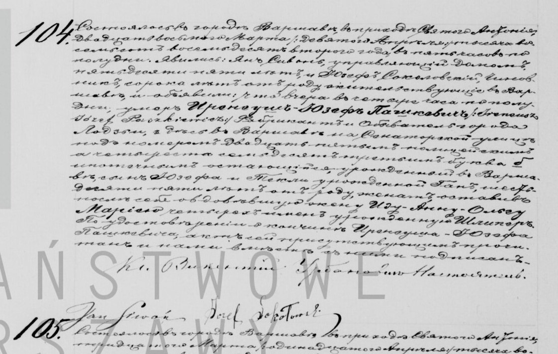 | genetekaz.11349910 | 8 | apr | 1882 | | xpar.1445 | Akt zgonu: Warszawa św. Antoni (obecn. m. Warszawa), 104/1882 http://localhost/mjm/antoni_1882_1218_15_0202.jpg [podglad] | | Akt zgonu obecny w bazie Geneteka |