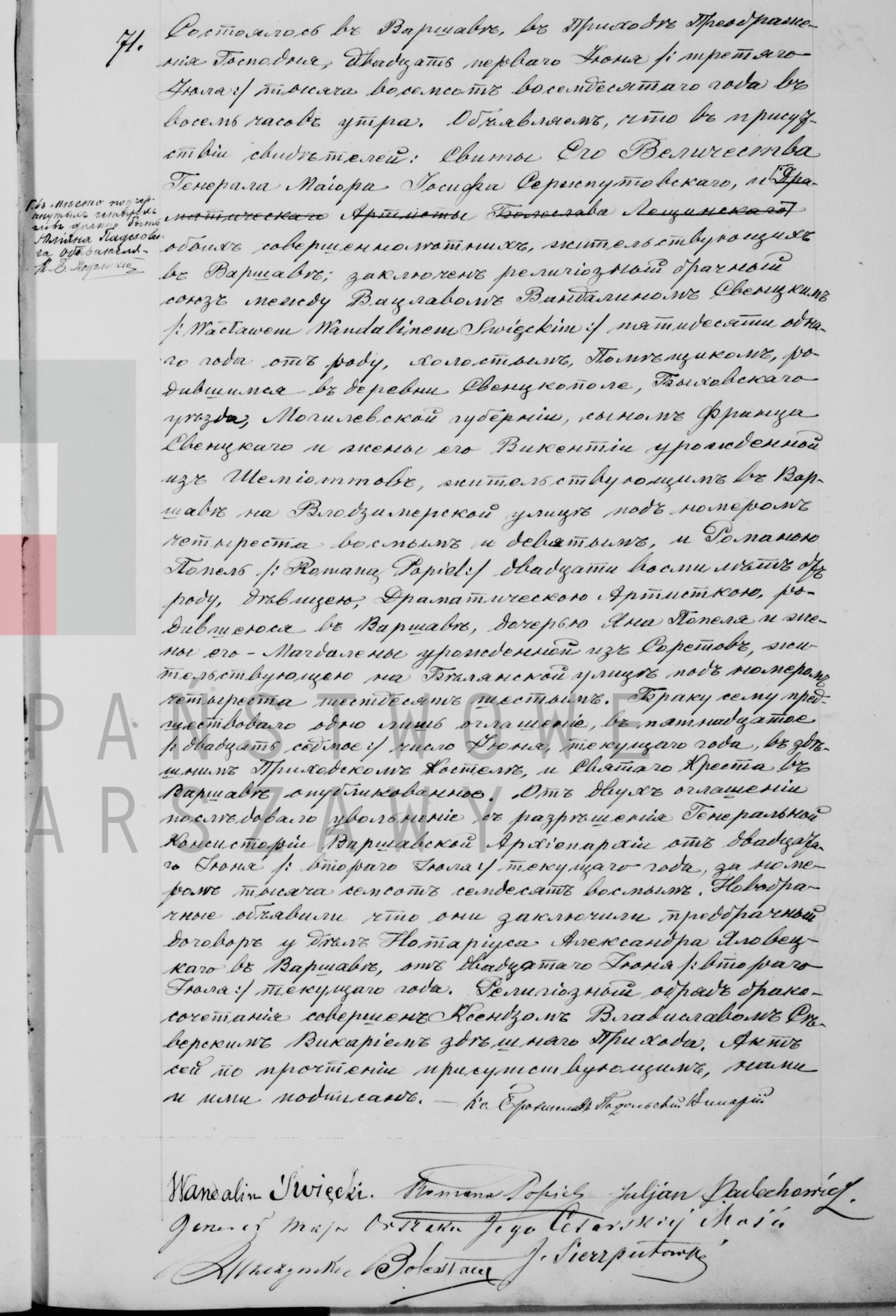 | psb.23756.1 | psb.23756.4 (psb.23756.4) | 1880 | xpar.1441 | Akt małżeństwa: Warszawa Przemienienie Pańskie (obecn. m. Warszawa), rok 1880, nr aktu 71 [indeks na http://geneteka.genealodzy.pl/] http://metryki.genealodzy.pl/metryki.php?op=kt&ar=1&zs=1216d&sy=1880&kt=2 [podgląd] | Akt ślubu obecny w bazie Geneteka | |||||