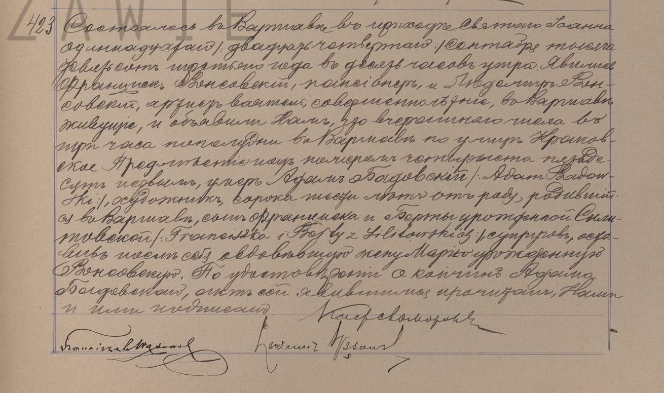 | sw.252944 | sw.252945 (sw.252945) | sw.252946 (sw.252946) | Akt małżeństwa: Warszawa św. Aleksander (obecn. m. Warszawa), 327/1895 [indeks na http://geneteka.genealodzy.pl/] http://metryki.genealodzy.pl/metryki.php?op=kt&ar=8&zs=9214d&sy=314&kt=2 [podgląd] |
