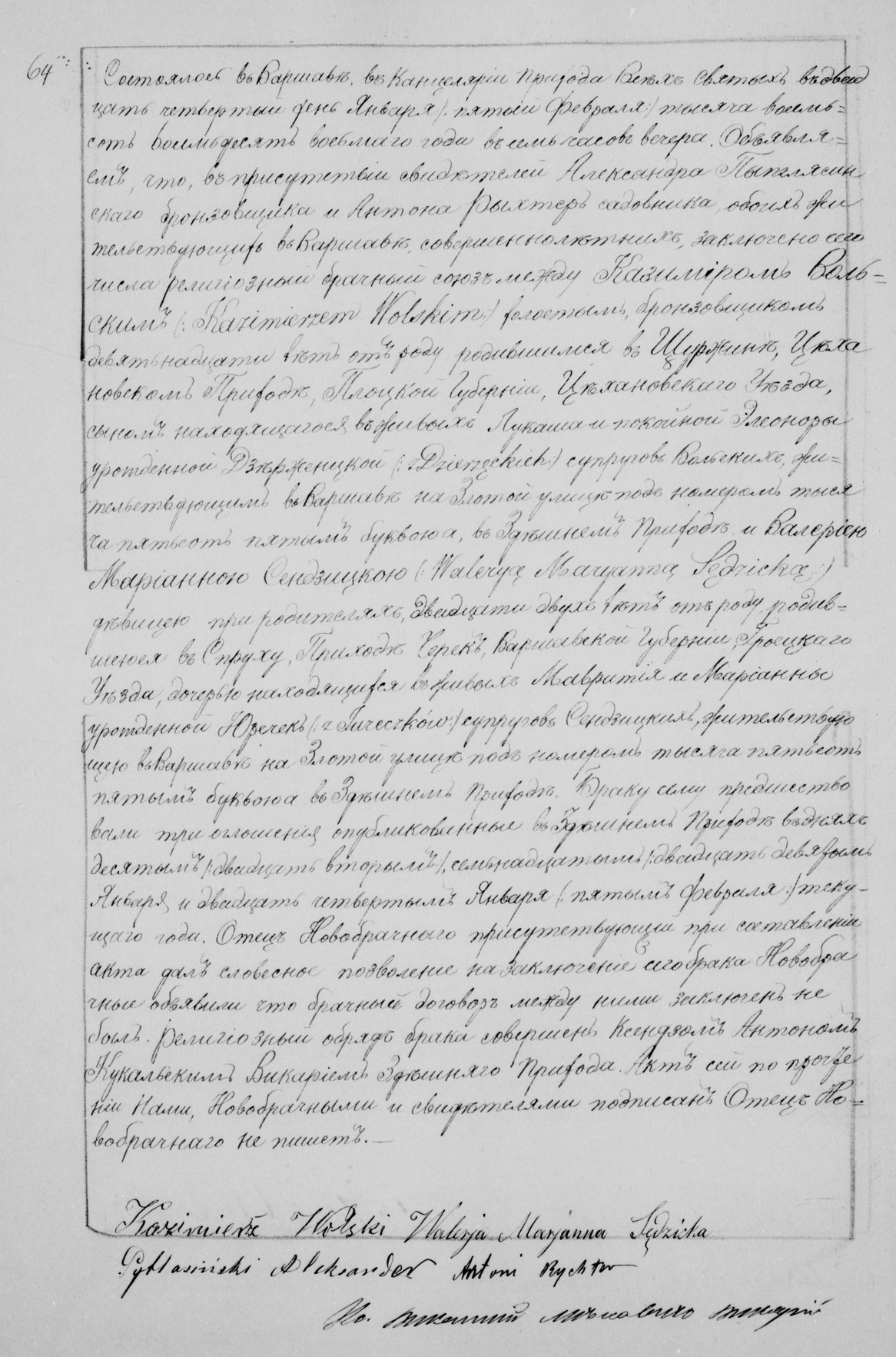 | sw.1156641 | sw.1156641 | sw.1013563 (sw.1013563) | sw.1013564 (sw.1013564) | Akt małżeństwa: Warszawa Wsz. Św. (obecn. m. Warszawa), 64/1888 [indeks na http://geneteka.genealodzy.pl/] http://metryki.genealodzy.pl/metryka.php?ar=8&zs=9264d&sy=312&kt=1&skan=064.jpg [podgląd] |