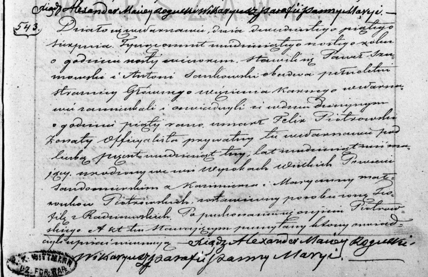 | sw.1018378 | sw.1018379 (sw.335458) | sw.1018380 (sw.335459) | Akt zgonu: Warszawa Nawiedzenie NMP (obecn. m. Warszawa), I-543/1866 [indeks na http://geneteka.genealodzy.pl/] https://metryki.genealodzy.pl/metryka.php?ar=1&zs=0160d&sy=1866a&kt=3&plik=538-543.jpg [podgląd] |