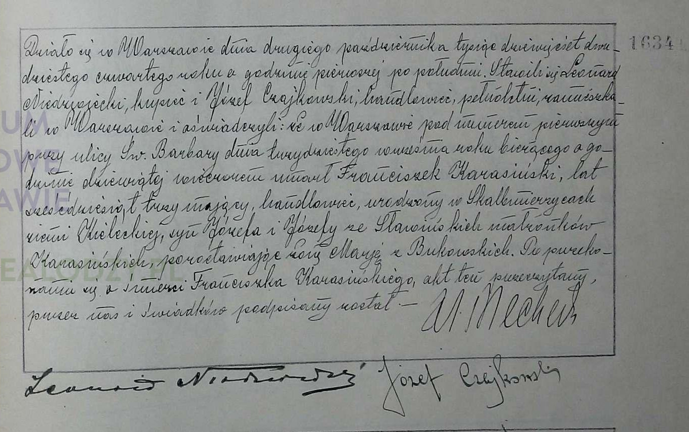 | sw.1025096 | sw.1121883 | sw.1121884 (sw.1018681) | sw.1121885 (sw.1018682) | Akt małżeństwa: Warszawa św. Krzyż (obecn. m. Warszawa), 204/1886 [indeks na http://geneteka.genealodzy.pl/] http://metryki.genealodzy.pl/metryki.php?op=kt&ar=1&zs=0158d&sy=1886b&kt=2 [podgląd] |