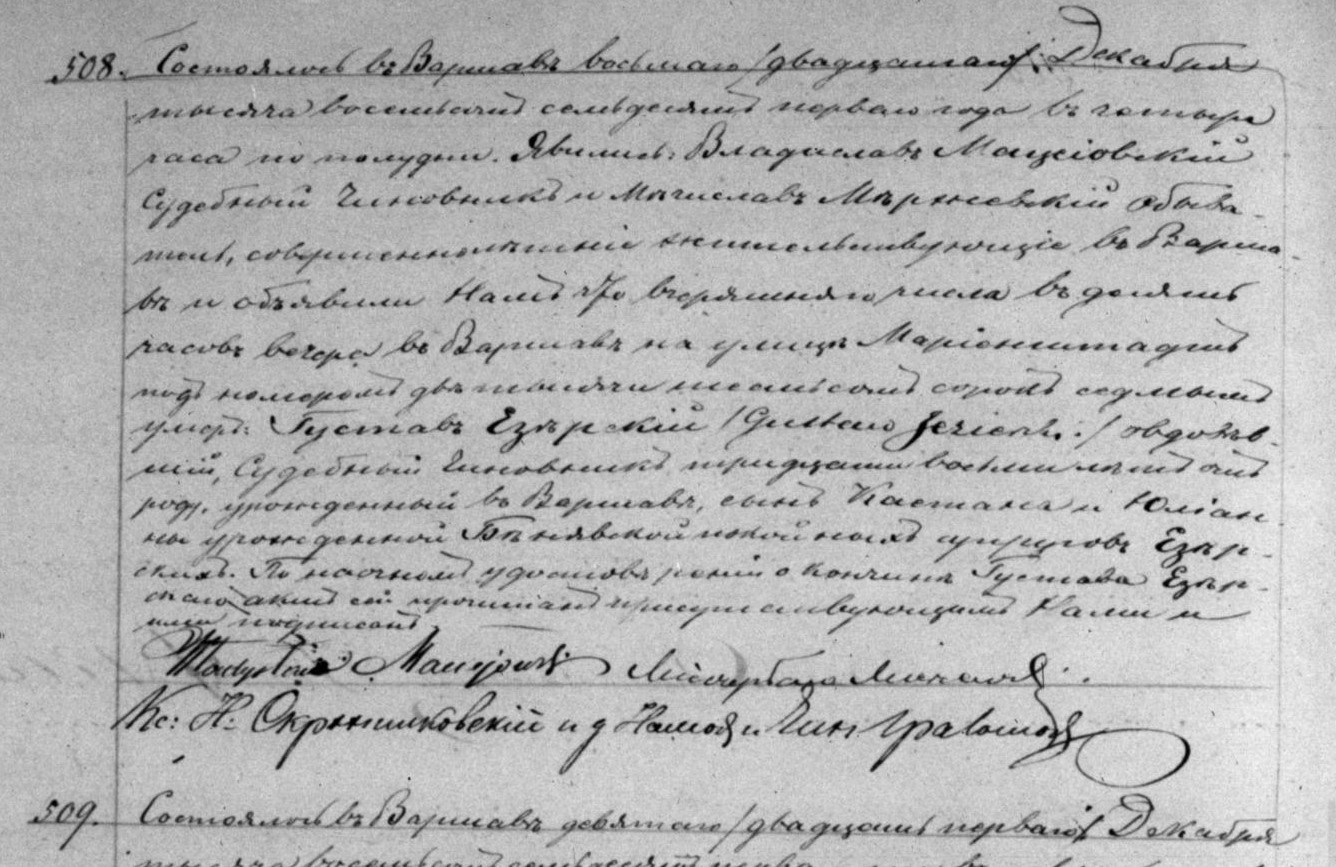 | sw.1023440 | | | 1867 | | | | żeni się | Akt zgonu: Warszawa św. Jan (obecn. m. Warszawa), 333/1871 [indeks na http://geneteka.genealodzy.pl/] http://metryki.genealodzy.pl/metryki.php?op=kt&ar=1&zs=0161d&sy=1871&kt=3 [podgląd] |