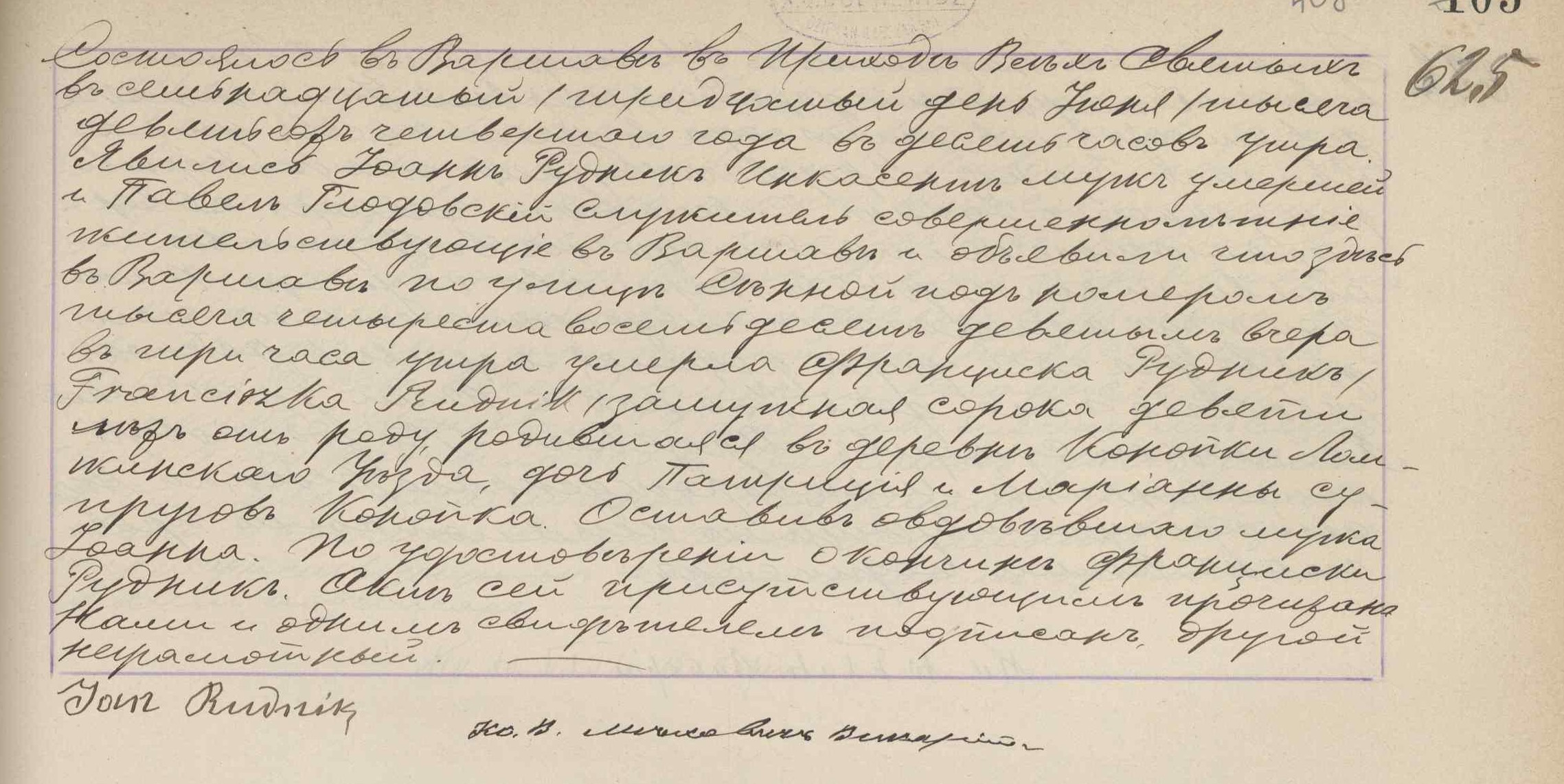 | sw.1024236 | m | Jan | | | | | Rudnik | | | | | Akt zgonu: Warszawa Wszystkich Świętych (obecn. m. Warszawa), 625/1904 [indeks na http://geneteka.genealodzy.pl/] http://localhost/mjm/wwswietych_1904_0622-0627.jpg [podgląd] |