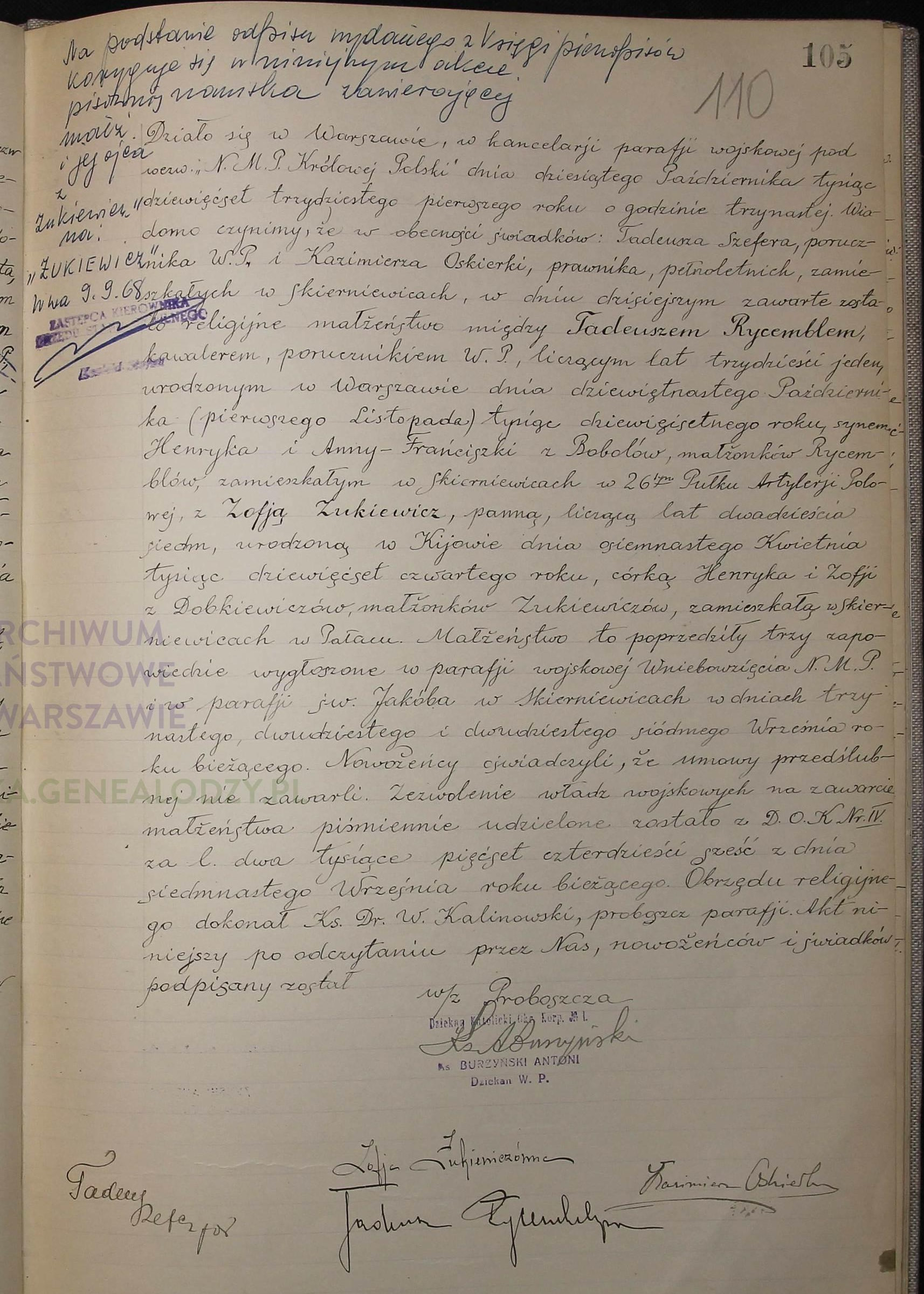 | sw.1296743 | sw.1296743 | sw.1058678 (sw.1058678) | sw.1028230 (sw.1028230) | Akt małżeństwa: Warszawa MB Częstochowskiej (obecn. m. Warszawa), 2/1933 [indeks na http://geneteka.genealodzy.pl/] https://metryki.genealodzy.pl/id2953-sy1933-kt2 [podgląd] |