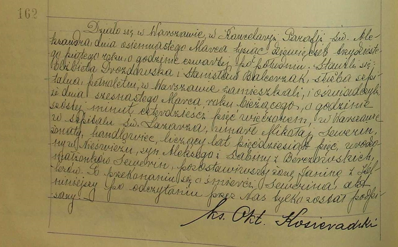 | sw.1206029 | sw.1206030 (le.1488.1.13) | sw.1206031 (sw.160446) | Akt małżeństwa: Warszawa-Praga MB Loretańska (obecn. m. Warszawa), 232/1908 [indeks na http://geneteka.genealodzy.pl/] http://metryki.genealodzy.pl/metryki.php?op=kt&ar=1&zs=1328d&sy=107&kt=4 [podgląd] |