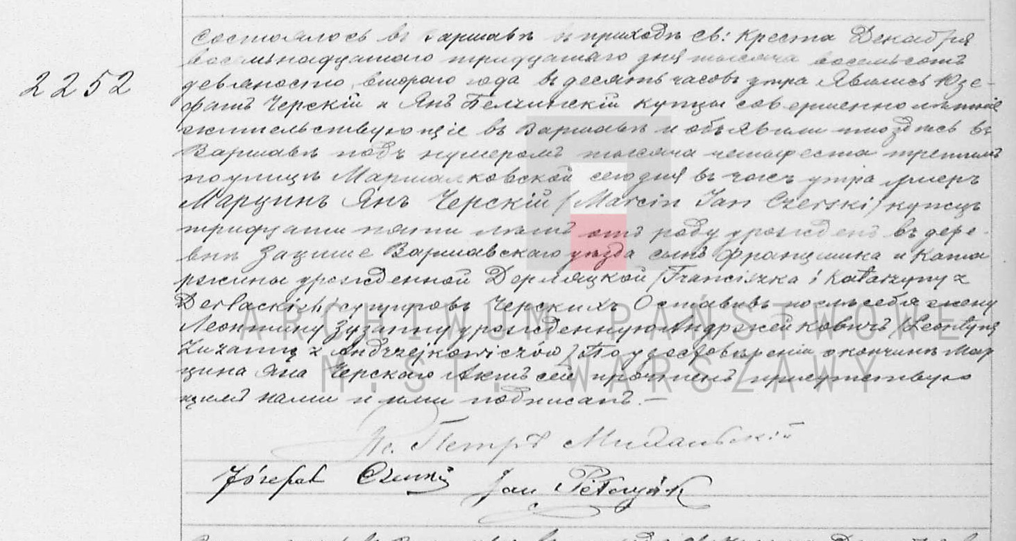 | sw.1135608 | sw.1135609 (sw.1135609) | sw.1135610 (sw.1135610) | Akt małżeństwa: Warszawa św. Krzyż (obecn. m. Warszawa), 75/1888 [indeks na http://geneteka.genealodzy.pl/] http://metryki.genealodzy.pl/metryki.php?op=kt&ar=1&zs=0158d&sy=1888b&kt=2 [podgląd] |