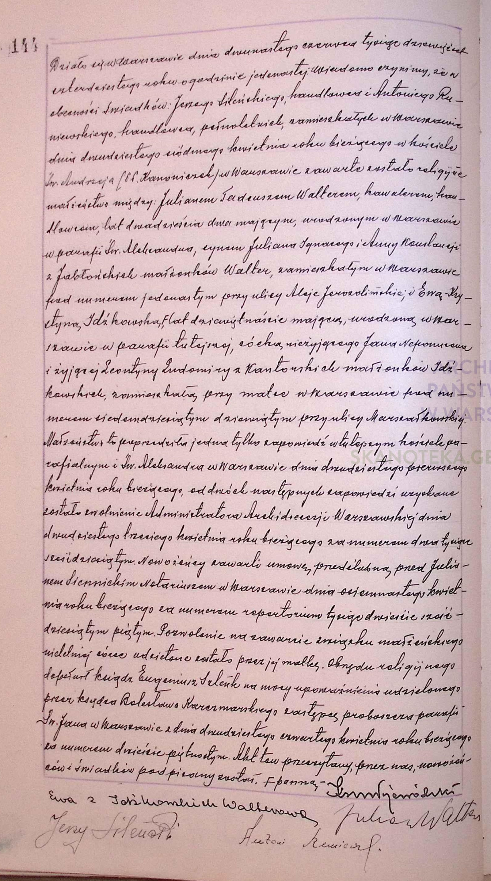 | sw.1142490 | sw.1142491 (sw.587471) | sw.1142492 (sw.587474) | Akt małżeństwa: Warszawa Najświętszego Zbawiciela (obecn. m. Warszawa), 299/1919 [indeks na http://geneteka.genealodzy.pl/] http://metryki.genealodzy.pl/metryki.php?op=kt&ar=1&zs=3684d&sy=1919b&kt=1 [podgląd] |