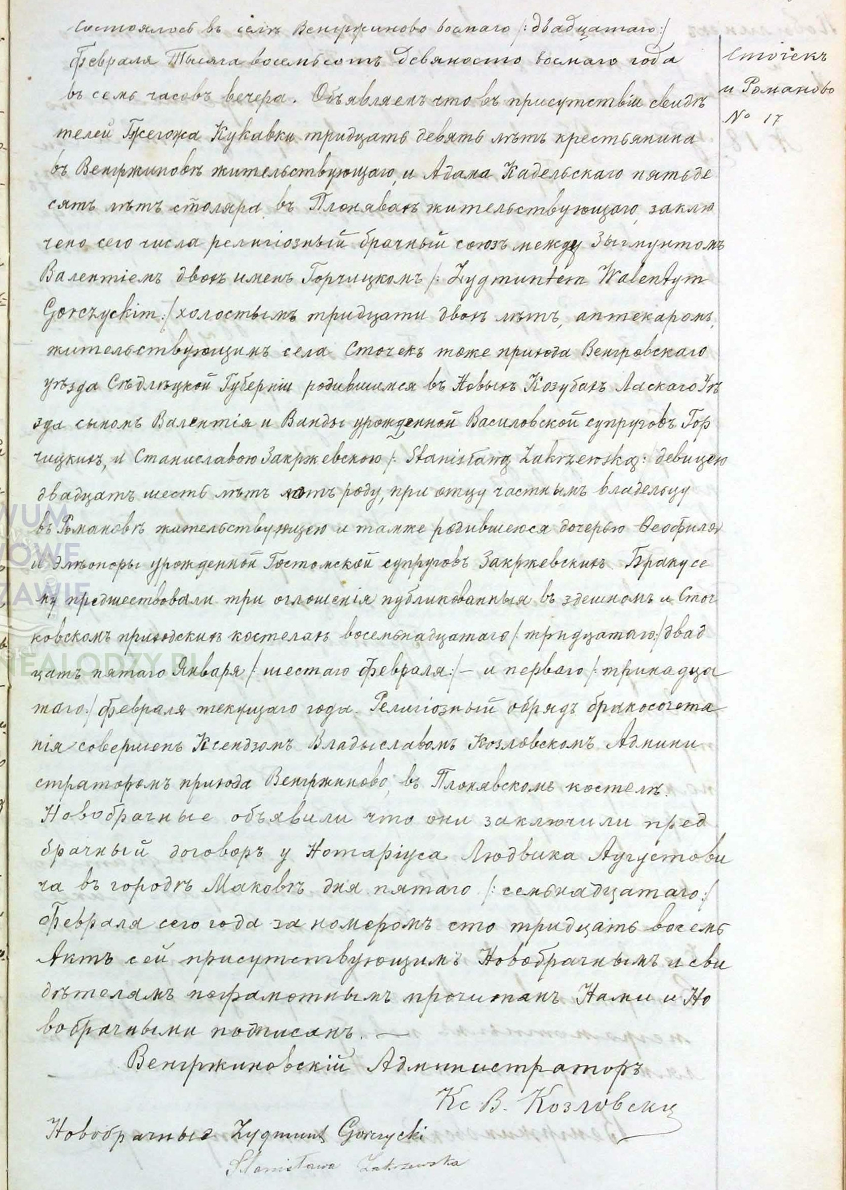 | sw.108087 | sw.1283922 | | sw.1032534 (sw.1032534) | Akt małżeństwa: Węgrzynowo (pow. makowski) (obecn. woj. mazow.), 5/1894 [indeks na http://geneteka.genealodzy.pl/] http://metryki.genealodzy.pl/metryki.php?op=kt&ar=6&zs=0111d&sy=1894&kt=2 [podgląd] |