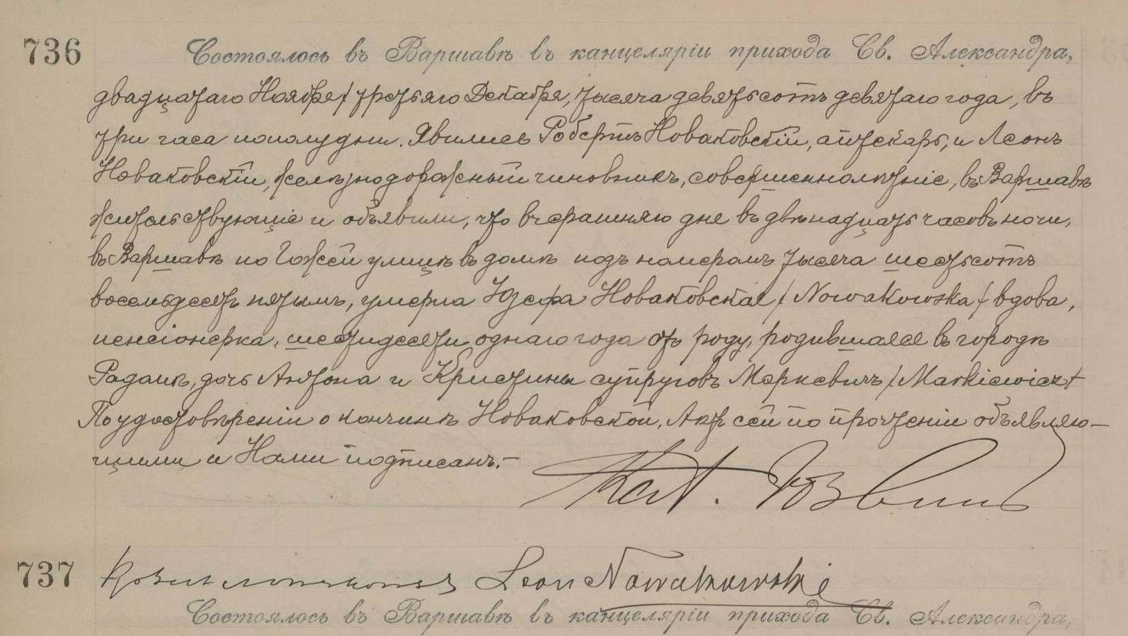 | sw.1051745 | sw.1051746 (sw.1051746) | sw.1051747 (sw.1051747) | Akt zgonu: Warszawa św. Aleksander (obecn. m. Warszawa), 736/1909 [indeks na http://geneteka.genealodzy.pl/] http://localhost/mjm/aleksander_1909_736-741.jpg [podgląd] |