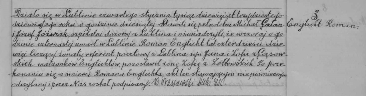 | sw.1043962 | sw.1043962 | n.182340 (n.182340) | n.187731 (sw.1071767) | Akt zgonu: Lublin św. Mikołaj (obecn. woj. lubel.), 3/1939 [indeks na http://geneteka.genealodzy.pl/] https://www.familysearch.org/ark:/61903/3:1:9396-CM8R-L?i=59&wc=M6ZW-SPX%3A171054801%2C184104701%2C184686401&cc=1867931 [podgląd] |