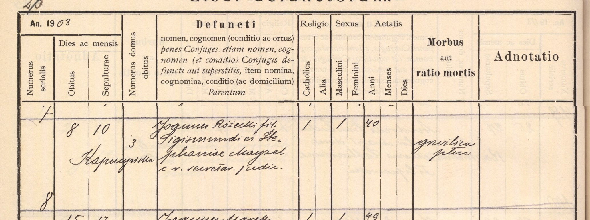 | sw.1085960 | sw.1085960 | sw.1085961 (sw.1085961) | sw.1085962 (sw.1085962) | Akt zgonu: Kraków św. Szczepana (obecn. woj. małop.), 538_108/1903 [indeks na http://geneteka.genealodzy.pl/] https://szukajwarchiwach.pl/29/331/0/2#tabZespol [podgląd] |
