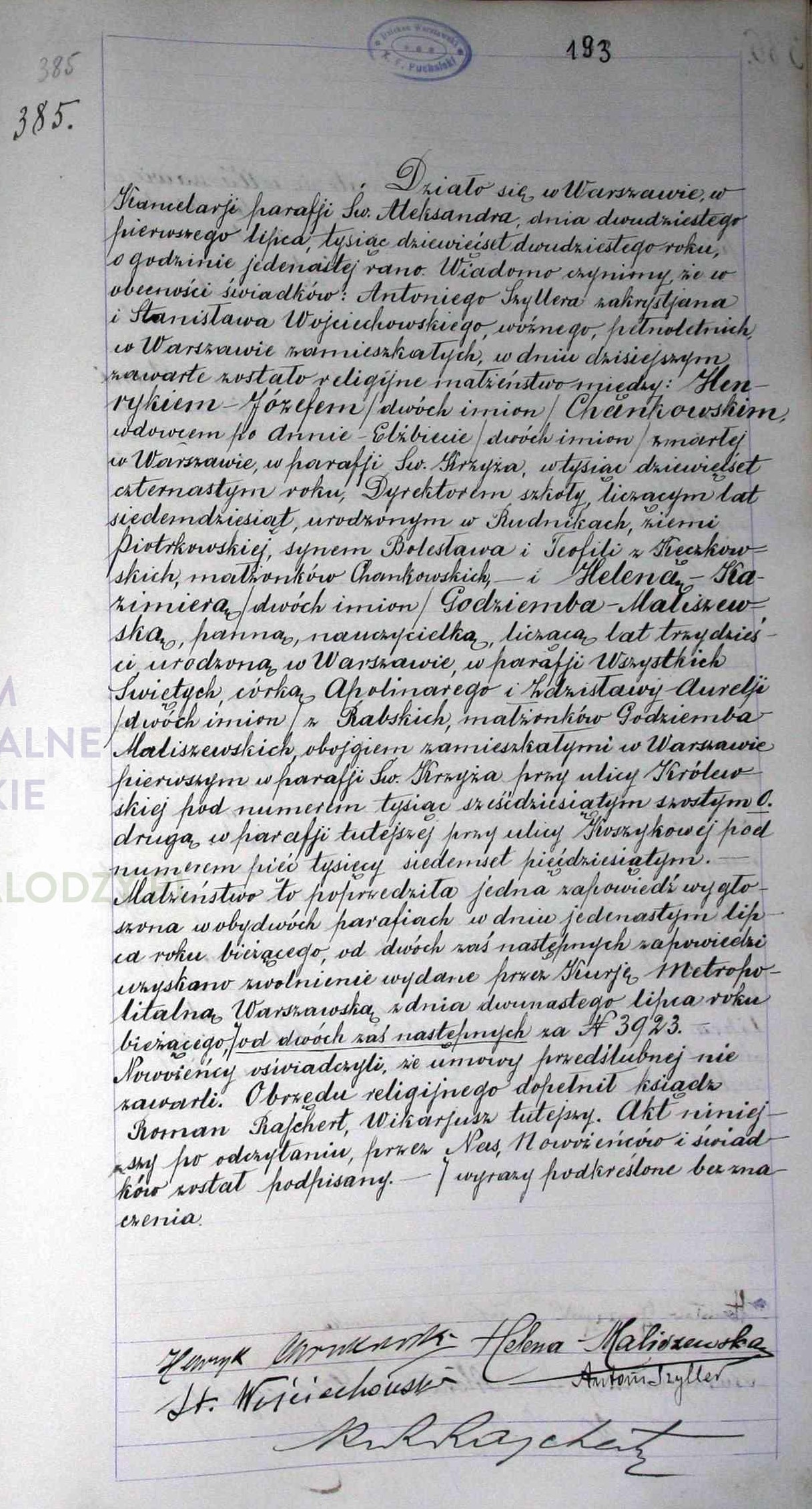 | sw.1028465 | sw.1102782 | sw.1102783 (sw.1102783) | sw.1102784 (sw.1102784) | Akt małżeństwa: Warszawa św. Aleksander (obecn. m. Warszawa), 385/1920 [indeks na http://geneteka.genealodzy.pl/] http://metryki.genealodzy.pl/metryki.php?op=kt&ar=8&zs=9214d&sy=336&kt=1 [podgląd] |