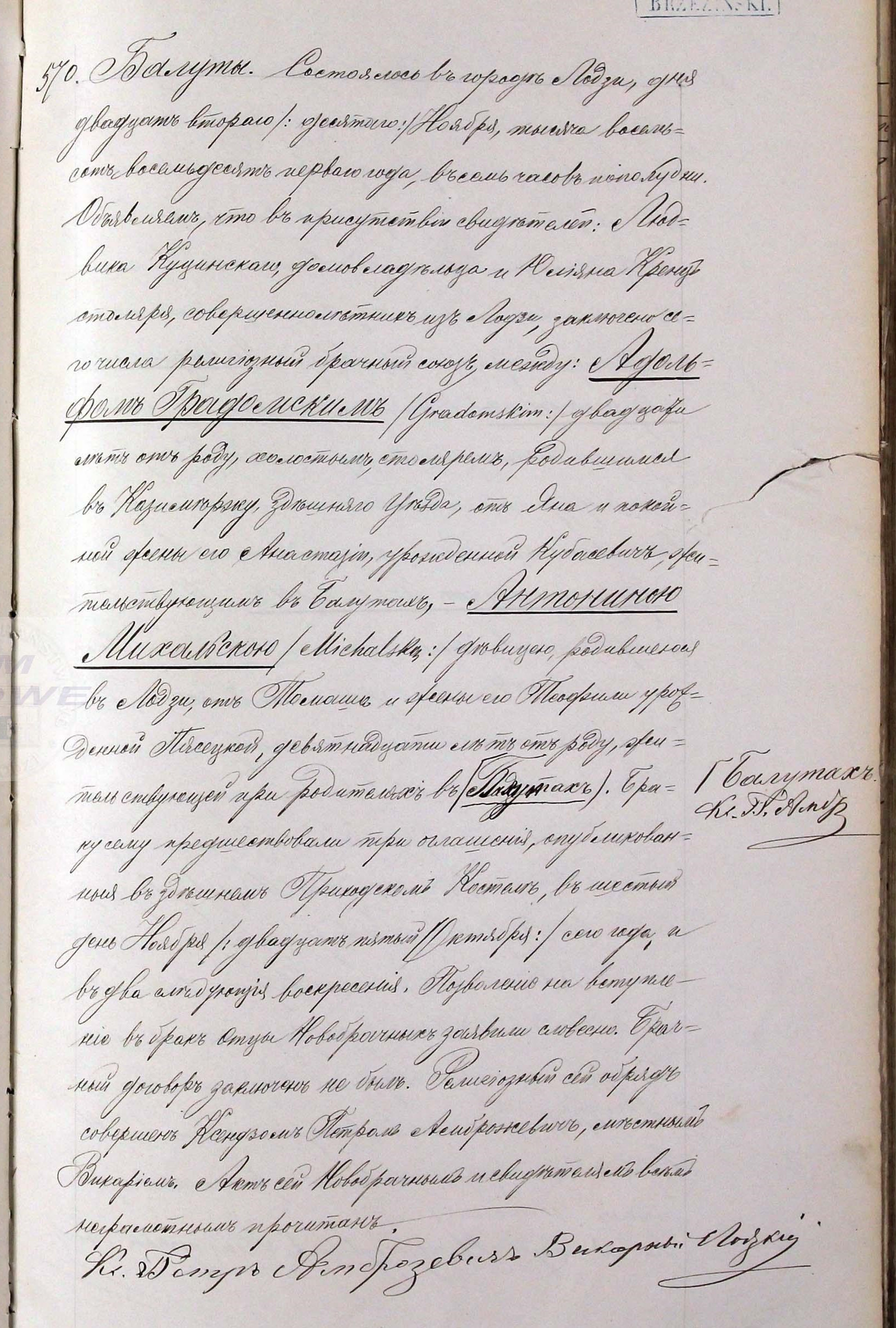 | sw.1176184 | sw.1176184 | sw.1131058 (sw.1131058) | sw.1131059 (sw.1131059) | Akt małżeństwa: Łódź NMP (obecn. woj. łódz.), 570/1881 [indeks na http://geneteka.genealodzy.pl/] http://metryki.genealodzy.pl/metryki.php?op=kt&ar=3&zs=1562d&sy=1881&kt=2 [podgląd] |